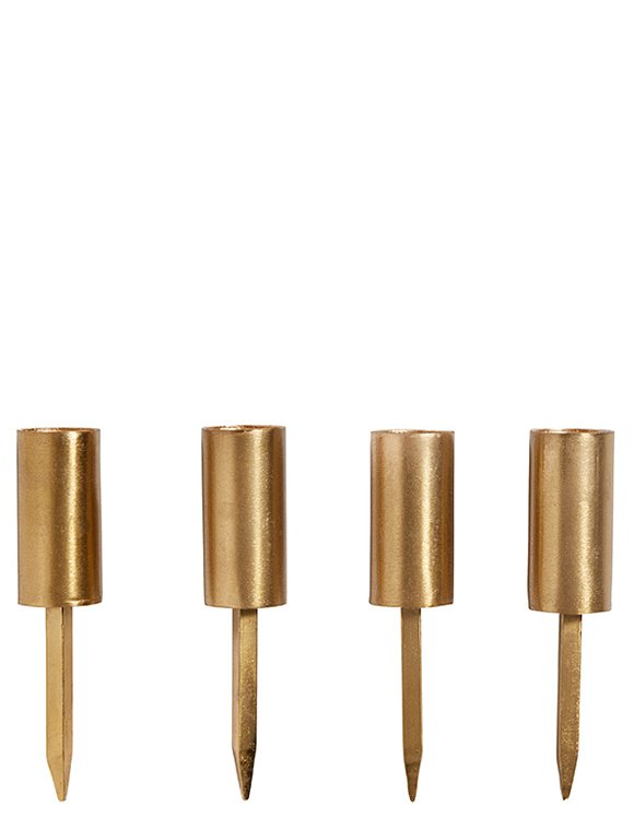 Schöne, schlichte Kerzenhalter für den Kranz von Nordal. Die feinen Halter gibt es aus Eisen mit einem rustikalen, schwarzen Finish oder einem glatten, edlen und glänzenden Messingfinish. Wir bieten zwei verschiedene Größen an: Die schmalen Stecker sind passend für normale Haushaltskerzen und können einfach in den festen Adventskranz gesteckt werden. In die breiteren Stecker passen Stumpenkerzen mit einem Durchmesser von 7 cm. Je nach Kranz, Kugel und Kerzenfarbe kann fröhlich dekoriert werden und die Weihnachtszeit beginnen. Bitte achte darauf, dass die Halter einzeln geliefert werden und die benötigte Anzahl angegeben werden muss. Die edlen Kerzenhalter für den Kranz von Nordal sind so schön, klassisch und absolut solide, dass man sie jedes Jahr wieder benutzen kann.Details: