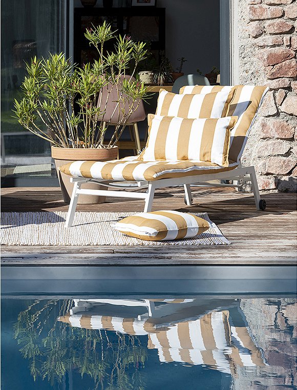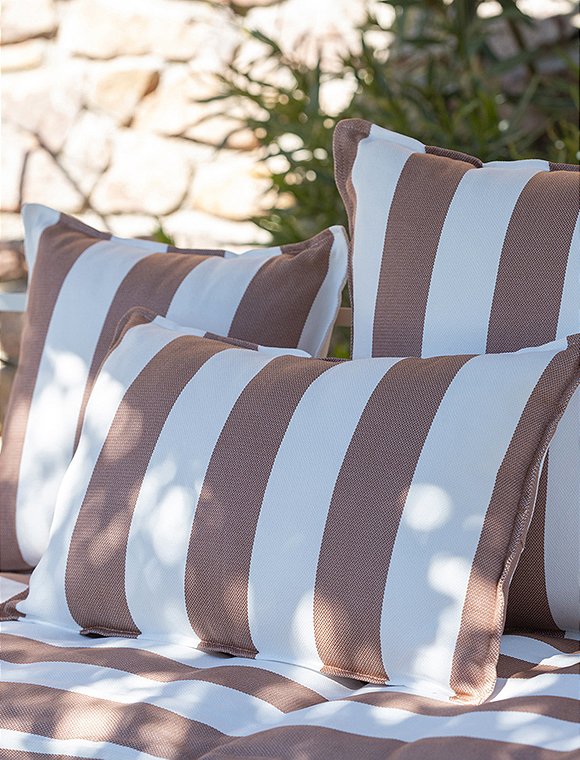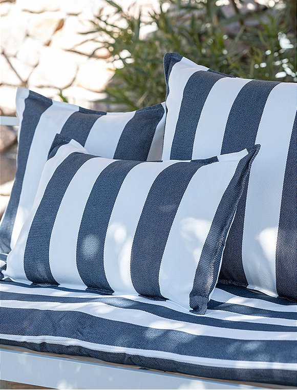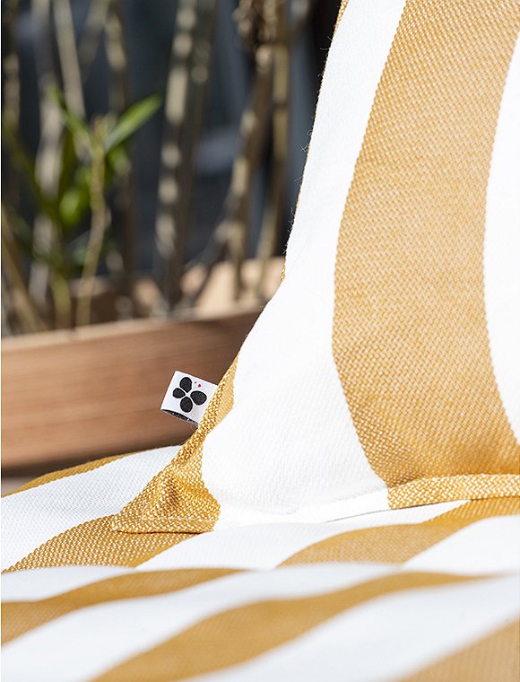 Das gestreifte Kissen Noa, outdoor, 60x60 cm von L'effet Papillon lässt sich ganz wunderbar kombinieren und ist in vier unterschiedlichen Farben erhältlich. So kann der Sommer gerne kommen :). Die pflegeleichte Kissenhülle ist 60 x 60 cm groß, aus 100% Polypropylene hergestellt, hat eine hübsche abgesteppte Kante und, kann schon einmal eine Nacht im Freien bleiben. Der Bezug wird mit einem Reißverschluss geschlossen, lässt sich leicht abnehmen und waschen. Das französische Label hat es sich zur Aufgabe gemacht, qualitativ hochwertige Textilien anzubieten. So sind alle Produkte unter fairen Bedingungen entstanden. Das Unternehmen versucht die Auswirkungen auf die Umwelt zu minimieren. Hab viel Spaß an dem hübschen Kissen Noa, outdoor, 60x60 cm von L'effet Papillon.Details: