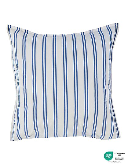 Ocean Blue - so heißt die Farbe des Kissenbezugs Liva 80x80 cm von byNord. Und genau die hübschen feinen blauen Doppelstreifen auf dem weißen Kissen bringen einen Hauch maritimes Flair in dein Schlafzimmer. Mit dem zeitlos schönen Kissenbezug Liva kannst du den luxuriösen Komfort eines feinen und atmungsaktiven Perkal-Kissens genießen. Denn dank einer Enzymwäsche ist er unglaublich weich. Dank der dichten Leinwandbindung aus Bio-Baumwolle mit STANDARD 100 by OEKO-TEX® erhältst du einen hochwertigen und atmungsaktiven Kissenbezug für einen besonders erholsamen Schlaf. Liva hat einen praktischen Hotelverschluss und lässt sich daher im Handumdrehen auf- und abziehen. Kombiniere den zeitlosen Baumwollbezug mit den weißen Bettbezügen von byNORD, um deinem Schlafzimmer eine entspannte und gemütliche Stimmung zu verleihen. All denen, die das blau-weiße Design lieben, empfehlen wir direkt das komplette Set aus Kopfkissen- und Bettbezug zu wählen - ebenfalls in unserem Sortiment erhältlich. Wir wünschen viel Freude mit dem kuschelweichen Kissenbezug Liva 80x80 cm von byNord. Details: