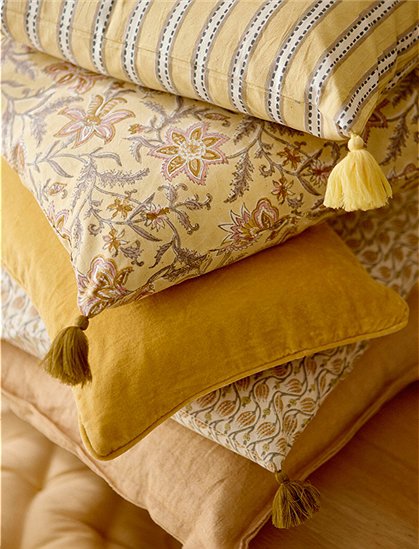 Viele Farben! Süße Kissenhülle von Bungalow...die schönen, handbedruckten Kissen gibt es in unterschiedlichen Farben und Mustern mit kleinen, niedlichen Quasten an den Ecken. Die Hülle ist aus 100% Baumwolle gearbeitet, hat einen praktischen Reißverschluss und kann bei max. 40° gewaschen werden. Die unterschiedlichen Muster lassen sich perfekt kombinieren, besonders charmant, wenn auch die Größen variieren. Toll auf dem Sofa oder deinem Lieblingssessel oder als Tageskissen auf dem Bett. Die individuell zusammengestellten Farb- und Musterwelten geben deinem Zuhause eine ganz persönliche Note und fügen sich schnell in dein Ambiente ein. Die süße Kissenhülle von Bungalow ist 50x50 cm groß - hab viel Spaß damit.
