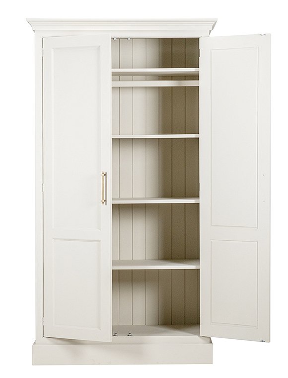 Einfach schön! Dieser Kleiderschrank Gustave von car Möbel im Landhausstil ist in vielen unterschiedlichen Farben erhältlich - er ist aus massivem Kiefernholz gearbeitet und bietet eine perfekte Raumaufteilung. Hinter den hochwertig gearbeiteten Türen mit Kassettenoptik bieten dir drei Einlegeböden und optional eine Kleiderstange viel Raum für deine Kleidung. Das hübsche Schrankmöbel mit einer Größe von 220 x 57 x 120 cm, bringt Ruhe und einen Hauch Nostalgie in dein Zuhause. Ganz gleich wo - das schlicht schöne Design mit ländlichem Charme zieht immer alle Blicke auf sich. Bei der Oberfläche hast du die Wahl zwischen vielen wunderbar gestrichenen (sichtbarer Pinselstrich) Farben - innen wie außen gleich. Hab viel Spaß an dem gut durchdachten Kleiderschrank Gustave von car Möbel - der in Europa gefertigt und montiert geliefert wird.