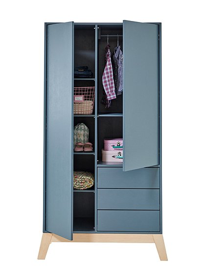Toller Kleiderschrank Scandic ist aus MDF gefertigt und hat drei praktischen Schubladen. Der hübsche Schrank im Skandinavischen Design passt perfekt ins Kinderzimmer und wächst vom Baby- bis ins Teenageralter ganz einfach mit. In vier unterschiedlichen Farben ist der lackierte Holzschrank erhältlich - weiß, hellgrau, Vespa grün und anthrazit - besonders schön setzt sich dabei der Sockel in Naturholz ab. Die Schubladen und Türen sind mit geräuschlosen, selbstschließenden Blumführungen und Scharnieren ausgestattet - so bleibt mit den soft close Beschlägen alles schön leise und besonders leichtgängig. Die Innenausstattung ist so aufgeteilt das alle Kleider eines Kindes hinein passen - d.h. hinter der linken Tür befinden sich verstellbare Regale (4 Einlegeböden), hinter der rechten Tür eine Kleiderstange und ein Einlegeboden. Der süße Kinderschrank ist Teil der neuen Kinder-Kollektion die aus einem Jugendbett, einem Regal und einem weiteren Schrank besteht. Die gesamte Serie ist aus hochwertigem MDF gearbeitet und wird ausschließlich in Europa gefertigt. Der solide Kleiderschrank Scandic wird ohne Griffe und Bohrungen geliefert (eine große Auswahl an Griffen finden Sie hier), und kommt fertig montiert (nur der Holzsockel muss noch drunter geschraubt werden), zu Ihnen nach Hause - wir wünschen Ihnen viel Spaß beim Einräumen.