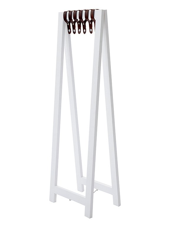 Für den Flur, das Schlaf- oder Ankleidezimmer: Unser Kleiderständer ist genau das Richtige für alle, die eine kompakte Aufbewahrungsmöglichkeit für Jacken und Mäntel suchen. Das Modell wird aus robustem weiß gestrichenem Kiefernholz gefertigt und hat oben sechs Lederriemen. Die weiße Oberfläche hat den Vorteil, dass sie zu vielen unterschiedlichen Möbelstücken Ihres Zuhauses passt. Weiße Einrichtungen, aber auch andere Holzarten sind somit die perfekten Kombinationspartner für die kompakte Garderobe. Um den nötigen Halt des Modells zu gewährleisten, befindet sich an den Fußteilen eine Metallkette, die für die nötige Balance sorgt. Als dekorative Abrundung an dem Kleiderständer befinden sich außerdem sechs Lederschlaufen, die zum Anbringen von Kleiderhaken gedacht sind. So finden Ihre Mäntel für den täglichen Bedarf oder liebsten Kleidungstücke ein repräsentatives Plätzchen. Bei dem Kleiderständer handelt es sich um ein exklusives car Möbel-Modell, das fertig montiert zu Ihnen nach Hause geliefert wird und direkt zum Platzieren bereit ist.