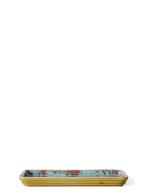 Small Dish. Mit der kleinen Schale 70s Keramik von HKliving bringst du Charakter und zeitlose Ästhetik auf deinen Tisch. Mit ihren Maßen von 2x7,7x18 cm überzeugt sie durch ihre schlanke, längliche Form und eignet sich perfekt zum stilvollen Servieren von Tapas, Sushi, kleinen Snacks oder Dips – ebenso macht sie als dekoratives Objekt eine hervorragende Figur. Du kannst zwischen zwei verschiedenen Designs wählen: Die kleine Schale „River“ besticht durch ihre vielschichtige, fließende Glasur und wirkt dabei dynamisch und gleichzeitig harmonisch. Ihre Oberfläche erinnert an natürliche Ablagerungen, die sich im Laufe der Zeit gebildet haben, wodurch sie eine besondere Tiefe und Lebendigkeit erhält. Das Design „Patina“ hingegen zeichnet sich durch eine reich strukturierte Glasur aus, die sich verwittert und haptisch ansprechend anfühlt, als wäre sie von der Zeit selbst geformt worden. Erdige Töne und subtile Farbnuancen verleihen ihr eine warme, authentische Ausstrahlung und machen sie zu einem vielseitigen Stück für den täglichen Gebrauch oder dekorative Arrangements. Egal für welches Design du dich entscheidest – mit der kleinen Schale 2x7,7x18 cm, 70s Keramik von HKliving setzt du auf ausdrucksstarkes Design mit individuellem Charakter.