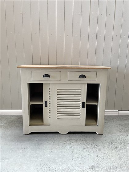 Sieht toll aus! Praktische Kommode mit Lamellentüren und Schubladen mit einer wunderschönen Ablage aus Teak. Die schöne Holzkommode gibt es in zwei unterschiedlichen Größen und Farben - so ist für jeden Geschmack etwas dabei. Besonders spannend wirkt die Ablage mit modernen Elementen - prima, dass man sie in jedem Raum gebrauchen kann. Schön also für Küche, Bad, Flur oder Arbeitszimmer und im Nu findet alles seinen fein sortierten Platz. Große Dinge verschwinden hinter den leichtgängigen Schiebetüren, die kleine Dinge finden in den beiden Schüben ihren Ort. Die praktische Kommode mit Lamellentüren wird montiert versendet.