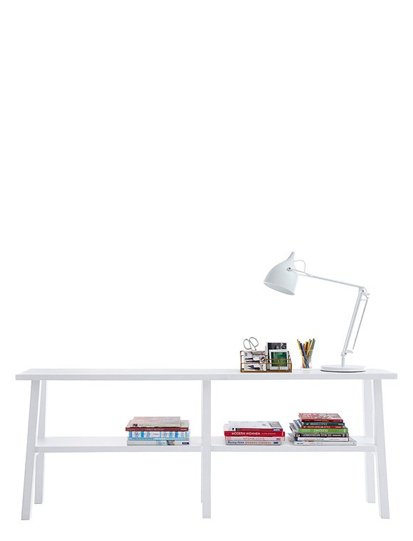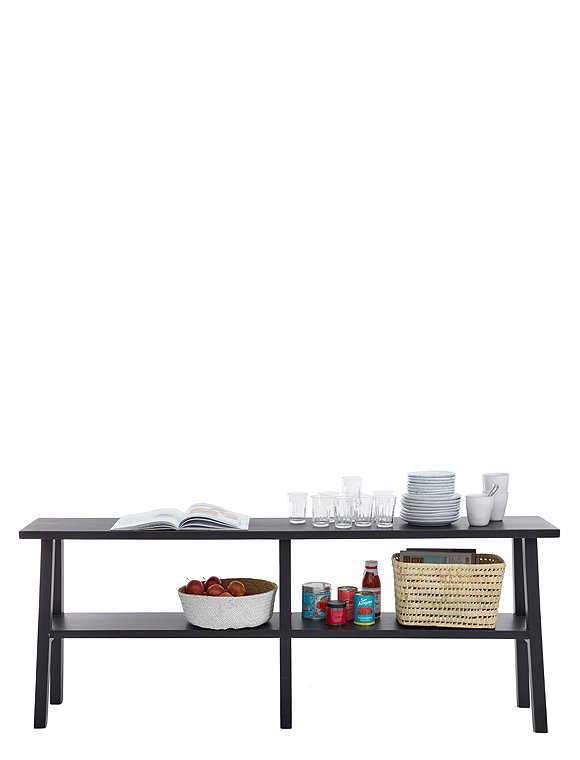 Der Konsolentisch lässt sich einfach kombinieren und ist in drei unterschiedlichen Farben und zwei unterschiedlichen Holzarten erhältlich. Durch seine geringe Tiefe von 30 cm ist er perfekt für schmale Räume und bietet Staufläche auf kleinem Raum. Der massive Holztisch aus recyceltem Holz im gemäßigten Landhausstil passt wunderbar ins ganze Haus und sortiert äußerst dekorativ vom Bildband über Handtücher, Küchenutensilien oder Arbeitsaccessoires ganz fleißig alles weg. Das alte Holz hat kleine Unperfektheiten, wie kleine Risse, Kerben etc., daher gleicht nicht eine Oberfläche der anderen - das macht sie aus, und äußerst charmant und einzigartig! Die Beine der Anrichte sind in die Tischfläche sichtbar verzapft, was den ländlichen Charme zusätzlich unterstreicht. Je ordentlicher gestapelt und dekoriert wird, desto leichter ist die optische Wirkung -  trotz seiner beachtlichen Breite von 180 cm. Das skandinavisch geprägte Design passt in die Stadt wie aufs Land und wirkt durch seine offene Art sehr charmant und persönlich. Die schöne Konsole ist in weiß oder schwarz mit sichtbarem Pinselstrich oder in natur mit gebürstetem Kiefernholz oder in natürlicher massiver Eiche erhältlich. Sie hat leicht ausgestellte Beine, eine praktische Ablage und ist eins unserer exklusiven car-Möbel Modelle. Der Konsolentisch wurde von uns entworfen, komplett in Europa gefertigt und wird fix und fertig aufgebaut geliefert. Einfach auspacken, aufstellen, einräumen, fertig - viel Spaß!