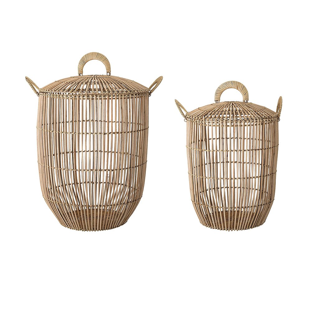 Hier passt viel rein! Der wunderschöne Korb mit Deckel von Bloomingville ist aus Rattan gearbeitet und verstaut jede Menge Alltagsgegenstände wie Wäsche, Kissen, Handtücher, Strick- oder Spielzeug. Den soliden Rattankorb gibt es in zwei unterschiedlichen Größen, jeweils mit Deckel und Griffen. So kann man ihn bequem von einem Raum in den nächsten schleppen ohne das etwas auskippt oder verloren geht. Mit ihrer großzügigen, schlichten Form passen sie in Bad, Flur, Schlaf- und Wohnzimmer und sind überall ein gern gesehenes Wohnaccessoire was Ordnung macht und somit räumliche Ruhe schafft. Der Korb mit Deckel von Bloomingville ist eine Bereicherung für jedes Zuhause! Viel Spaß damit Details: