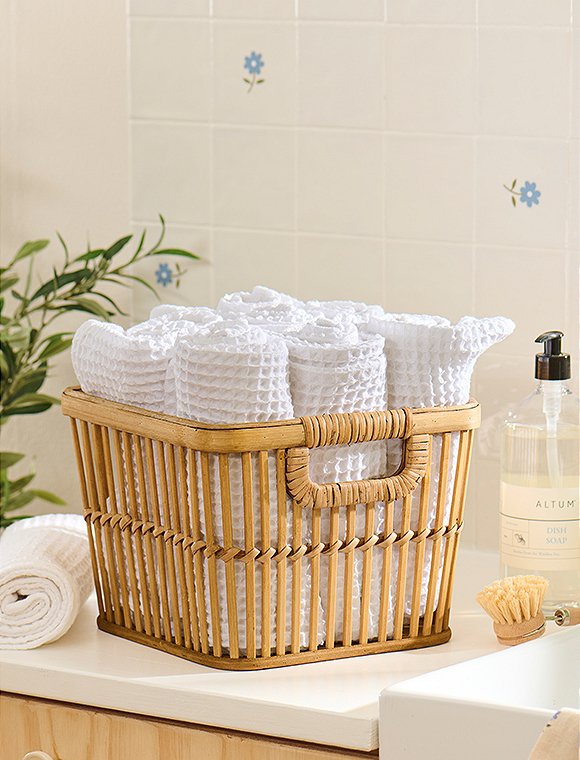Der luftige Korb mit Griffen aus Bambus, 20,5x27x27 cm von Ib Laursen bringt natürliche Leichtigkeit und warmen Ton in dein Zuhause. Sein offenes, vertikales Flechtwerk verleiht ihm einen luftigen, modernen Ausdruck, während die sauber gerundete obere Kante und die eingearbeiteten Griffe für ein harmonisches, gut durchdachtes Design sorgen. Die quadratische Form wirkt klar und ordentlich – ideal, wenn du zeitlose, helle Naturmaterialien liebst. Durch die integrierten Griffe kannst du den Korb mühelos tragen und flexibel einsetzen. Er eignet sich perfekt für aufgerollte Gästehandtücher im Bad, für Zeitschriften oder Garn im Wohnzimmer, für Küchenvorräte, Accessoires im Flur oder sogar als dekorativer Übertopf für robuste Pflanzen. Auch im Kinderzimmer oder im Homeoffice schafft er schnell stilvolle Ordnung. Mit seinen Maßen von 20,5x27x27 cm fügt er sich unkompliziert in jedes Raumkonzept ein. Ein dekorativer, praktischer Alltagsbegleiter, der mit seinem natürlichen, zeitlosen Look überall ein warmes, wohnliches Gefühl hinterlässt - das ist der hübsche Korb mit Griffen aus Bambus, 20,5x27x27 cm von Ib Laursen.