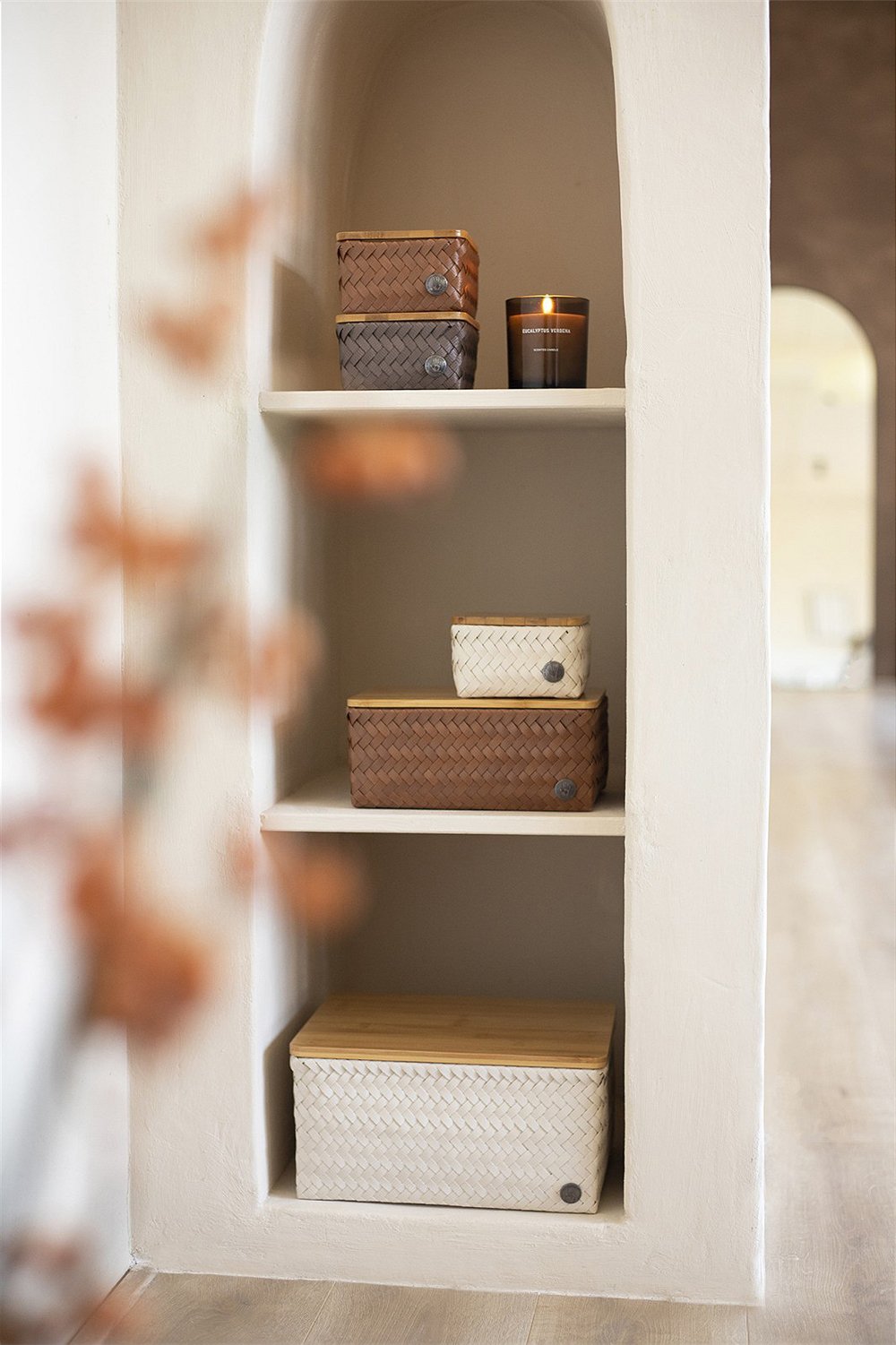 Sehen edel aus! Der Korb Top Fit large von Handed By ist dekorativ und praktisch zugleich und mit seiner Größe von 15 x 23 x 31 cm oder 28 x 32 x 37 cm kannst du jede Menge darin verstauen. Die rechteckigen Körbe mit einem Deckel aus Bambus -  gibt es in zwei bzw. drei unterschiedlichen Farben - es stehen dir champagner, copper blush und taupe zur Verfügung. Alle drei Farben sind sanfte Töne und lassen sich prima dekorieren. Die geflochtenen Körbe sind aus 70% receyceltem Kunststoff hergestellt und sehr stabil. Sie sind ideal für Küche, Bad, Flur und Home Office und prima geeignet für all die kleinen und größeren Dinge die man immer sucht und viel, viel zu spät findet. Wir wünschen dir gutes gelingen beim Sortieren und Aufräumen mit dem tollen Korb Top Fit large von Handed By.