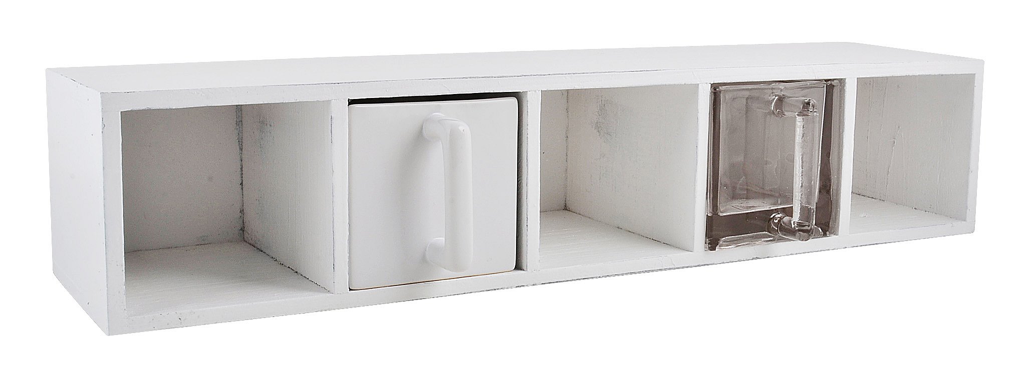 Retro Look! Küchenboard von Ib Laursen mit 5 Fächern aus weiß gestrichenem Holz. Das süße Regal kann mit kleinen Vorratsschubladen ausgestattet werden - es stehen drei unterschiedliche Schübe mit klassischen Griff zur Verfügung: Keramik in weiß oder grau oder aus durchsichtigem Glas. Die Schübe sind leicht zu handhaben und können vollständig heraus genommen werden. Da wird das Backen zum Kinderspiel - bitte achten Sie darauf, dass die Schübe nicht im Lieferumfang enthalten sind und extra bestellt werden müssen. Das süße Küchenboard von Ib Laursen im used-look wird fix und fertig montiert geliefert Details: