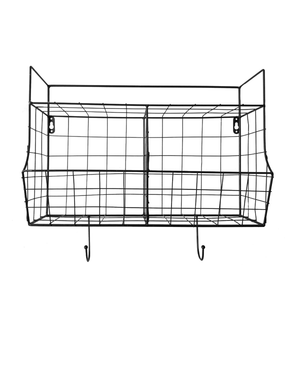 Das kleine Küchenregal mit praktischem Korb aus Metall bietet Platz für vielerlei Kleinigkeiten in der Küche. Ölflaschen, Gewürzgläser, Teedosen und andere hübsche kleine Schälchen oder Kaffeebecher finden in diesem filigranen Wandregal ihren Platz. Das Modell ist aus Metall gefertigt und im klassischen Gittermuster designt. Der kleine Korb im unteren Bereich gibt Halt und die Abstellfläche im oberen Bereich ist ebenfalls schnell bestückt. Besonders praktisch sind die zwei Haken, an denen Geschirrtücher oder Topflappen aufgehängt werden können. Das Regal ist in den Farben weiß oder schwarz erhältlich. Das Metallregal bietet nicht nur funktionalen Stauraum, sondern ist gleichzeitig mit hübschen Fläschchen und Gläsern bestückt auch ein toller Blickfang an der Küchenwand. Wir finden, das Küchenregal mit Korb aus Metall ist ein dekoratives Accessoire, das schnell für Ordnung in der Küche sorgt. Details: