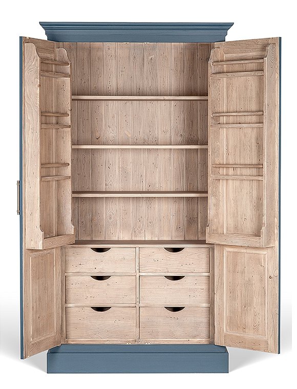 Einfach schön! Dieser Küchenschrank Gustave von car Möbel im Landhausstil ist in vielen unterschiedlichen Farben erhältlich - er ist aus massivem Kiefernholz gearbeitet und bietet eine perfekte Raumaufteilung. Hinter den hochwertig gearbeiteten Türen mit Kassettenoptik bieten sechs Schubladen und drei Einlegeböden viel Raum für deine Küchenutensilien. In der Türinnenseite sind je drei schmale Regale integriert die für zusätzlichen Komfort sorgen. Das hübsche Schrankmöbel mit einer Größe von 220 x 57 x 120 cm, bringt Ruhe und einen Hauch Nostalgie in deine Küche. Ganz gleich wo - das schlicht schöne Design mit ländlichem Charme zieht immer erst einmal alle Blicke auf sich. Bei der Oberfläche hast du die Wahl zwischen vielen wunderbar gestrichenen (sichtbarer Pinselstrich) Farben - innen wie außen gleich. Wer etwas mehr Landhausstil bevorzugt, verliebt sich sicher in den petrolfarbenen Schrank mit natürlicher Innenraum Gestaltung. Hab viel Spaß an dem gut durchdachten Küchenschrank Gustave von car Möbel - der in Europa gefertigt und montiert geliefert geliefert wird.