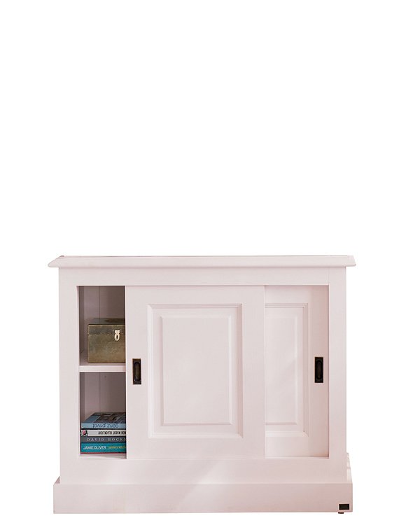 Diese kleine Landhauskommode mit praktischen Schiebetüren gibt es in 16 Farben - sie ist ganz vielfältig einsetzbar, und Dank ihrer Schiebtüren benötigt sie nur geringen Platz zum Öffnen der Türen und ist somit hervorragend für schmale Räume geeignet. Super für das Bad, ideal für den kleinen Flur - und um den Stauraum der Kommode ideal zu nutzen - befindet sich hinter den Türen ein praktischer Einlegeboden. Die Kommode ist aus massivem Kiefernholz gefertigt und in 16 unterschiedlichen Farben gestrichen (Pinselstrich sichtbar) erhältlich. Die Schiebetüren haben eingelassene Griffmulden aus Metall und laufen auf einfachen Holzleisten. Die Kommode im Landhausstil ist ein exklusives car Möbel Modell, von uns entworfen, in Europa hergestellt und wird für dich fix und fertig montiert versendet. Einfach aufstellen, einräumen, fertig! Bitte beachte, dass alle bunten Farben (ausgenommen weiß), eine Sonderanfertigung für dich sind - und somit vom Umtausch ausgeschlossen.