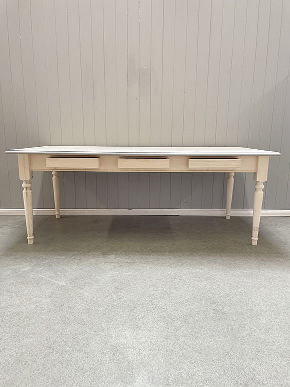 Auf die Freundschaft! Schön, dass man an diesem Landhaustisch locker sechs Personen unterbringt...denn dann kann gegessen und gefeiert werden, einfach den Alltag hinter sich lassen und mit netten Freunden den Abend verbringen. Nichts schmeichelt dem schönen Tisch mehr als Geselligkeit. Natürlich eignet er sich auch zum Hausaufgaben machen, basteln, nähen oder die Steuererklärung. Der Tisch im Landhausstil hat eine 3 cm starke Tischplatte, gedrechselte Beine und teilweise (abhängig vom Maß) auf der einen Seite Schubladen für Besteck, Kerzen, Servietten und allerhand Krimskrams...Er passt zu modernen Möbeln im Kontrast, und in Kombination mit Landhausmöbeln ganz klar wie schon immer da gewesen...schnell verbreitet er ein warmes, heimeliges Ambiente. Der Tisch wird teilmontiert geliefert, die Montage ist denkbar einfach, lediglich die" Beine mit den mitgelieferten Schrauben an dem Top befestigen. Der Holztisch hat eine lichte Höhe (Maß vom Fußboden bis Unterkante Tischzarge) von 62 cm, so können die meisten Stühle dicht unter den Tisch geschoben werden. Der Landhaustisch wird in Europa gefertigt