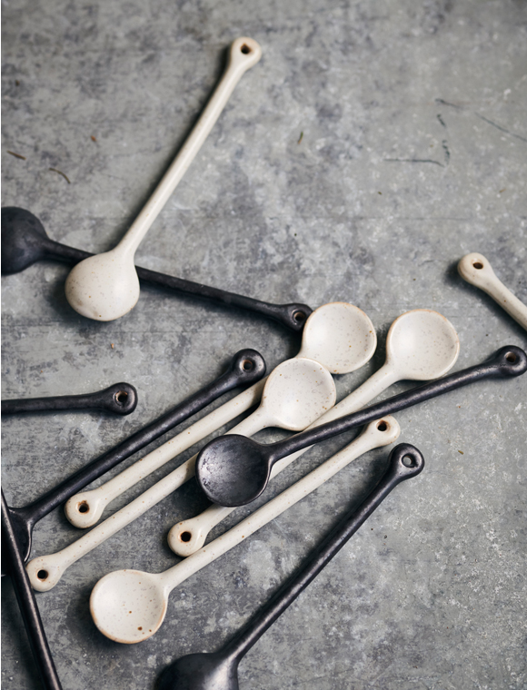 Der formschöne Löffel Pion von house doctor aus Porzellan ist die perfekte Ergänzung zu den Bechern und Tassen der neuen Kollektion. Das schöne Geschirr des dänischen Labels gibt es dabei in zwei Varianten. Die schwarz/braune Farbe hat eine wunderschöne, matte Effektglasur die der Oberfläche eine einzigartige, oxidierte Optik verleiht. Die weiß/graue Glasur hat wiederum eine gesprenkelte, zarte Oberfläche die einen tollen Kontrast zur dunklen Version bildet. Beide Töne lassen sich unkompliziert miteinander kombinieren und ergeben ein abwechslungsreiches, ungezwungenes Bild auf dem Tisch. Das heißt, alle Teile der schönen Geschirrserie Pion lassen sich miteinander kombinieren - entscheide selber wie die Gewichtung der Farben ausfällt. Alles ist möglich und nichts muss - hell, dunkel oder wird ein aufregender Mix daraus. Der Löffel Pion von house doctor macht auf jeden Fall alles mit.Details: