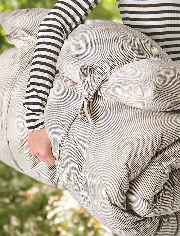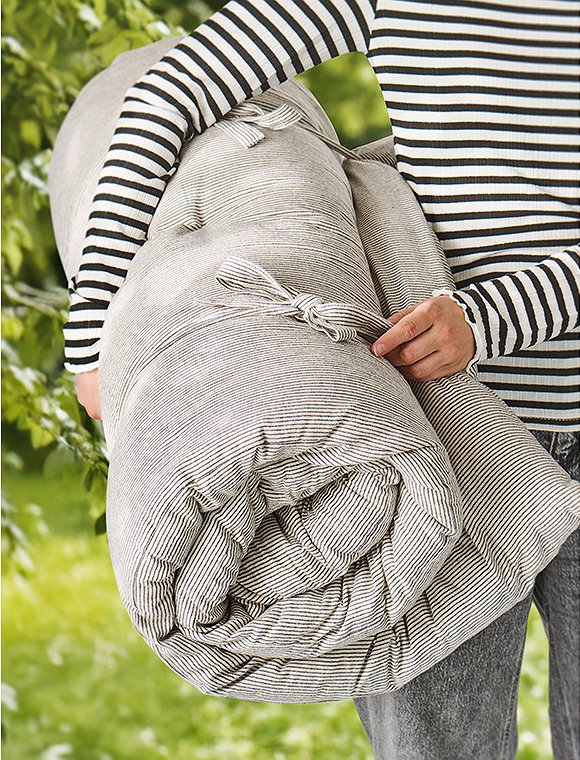 Mit dem Matratzenkissen 8x100x50 cm von Ib Lausen machst du dir jeden Sitzplatz besonders gemütlich. Die großzügige, angenehm weiche Polsterung und der sanfte Baumwollstoff laden dich sofort zum Hinsetzen, Entspannen und Verweilen ein. Ob auf deinem Lieblingsstuhl, einer Gartenbank, in der Loungeecke oder direkt auf dem Boden – dieses Kissen schafft im Handumdrehen eine kleine Wohlfühloase. Der Bezug besteht aus reiner Baumwolle, die Füllung aus einer langlebigen Kunstfaser, sodass du ein formstabiles und zugleich bequemes Sitzgefühl genießt. Das Matratzenkissen ist zusammenklappbar, leicht aufrollbar und dank der zwei Tragegriffe überallhin mitnehmbar. So begleitet es dich nicht nur im Garten oder auf dem Balkon, sondern auch zu Picknicks, an den Badesee oder in den Park. Du kannst zwischen drei schönen Streifendesigns wählen, die jeweils ihren eigenen Charakter haben. Lina zeigt sich in natürlichem Ton mit feinen schwarzen Streifen und wirkt besonders harmonisch. Linea bringt mit hellgrünem Stoff und schmalen blauen Streifen eine frische, leichte Atmosphäre. Charlie kombiniert cremefarbenen Hintergrund mit dünnen dunkelblauen Streifen und erinnert an zeitlose, maritime Eleganz. Mit seinen großzügigen Maßen bietet dir dieses längliche Kissen eine besonders komfortable Fläche, auf der du lesen, entspannen oder einfach die Sonne genießen kannst. Egal wo du es nutzt – das Matratzenkissen 8x100x50 cm von Ib Laursen macht jeden Moment ein wenig weicher, gemütlicher und schöner.