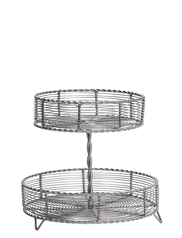 Diese Metalldraht Etagere von Madam Stoltz bietet eine schlichte, zweistöckige Struktur für übersichtliche und offene Aufbewahrung. Sie wird in Indien gefertigt und passt perfekt in ruhige, ungezwungene Umgebungen. Ideal ist sie für die Tischdeko oder deine Küche - Restaurants, Cafés oder Geschäfte. Dank ihrer luftigen Form bleiben die Inhalte gut sichtbar, egal ob du Gebäck, Gewürze oder Tischaccessoires für Gäste arrangierst. In der Küche ist sie perfekt für die Aufbewahrung von Obst, Gemüse oder anderen Lebensmitteln. Die dezenten Stahltöne ermöglichen es, das Regal unaufdringlich auf Küchenarbeitsplatten, Esstischen oder Serviertheken zu platzieren. Hab viel Spaß an der vielseitigen Metalldraht Etagere von Madam Stoltz. Details: