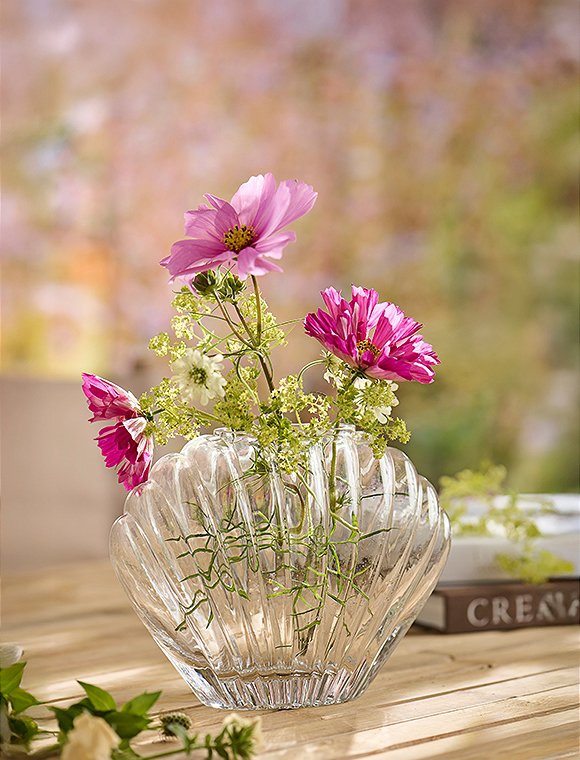 Eine Vase voller Meerespoesie.  Die muschelförmige Glas Vase von Ib Laursen fängt das Licht mit ihrer besonders schönen Silhouette aus klarem Glas auf elegante Weise ein und setzt Blumen dekorativ in Szene. Das Modell mit den Maßen 14x7,5x19 cm bietet Platz für Blumen, Zweige, Trockenblumen oder Gräser, die sich in der breiten Aussparung richtig hübsch anordnen und auffächern lassen. Doch auch ungefüllt macht die Vase in Muschelform richtig was her. Ob als skulpturales Detail auf dem Tisch oder im Fenster – ein Design, das Naturformen mit zeitloser Eleganz verbindet. Wir wünschen viel Freude mit der charmanten muschelförmigen Glas Vase von Ib Laursen.