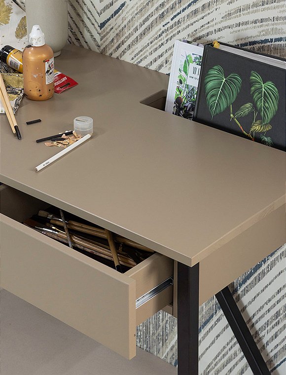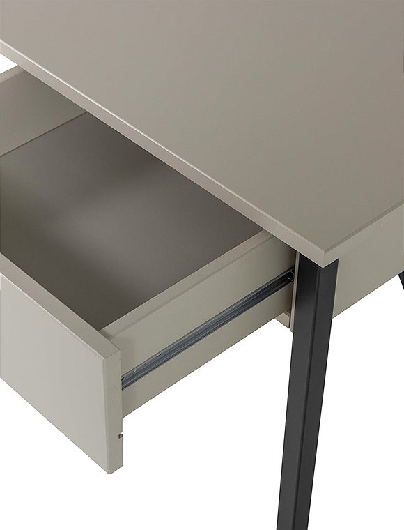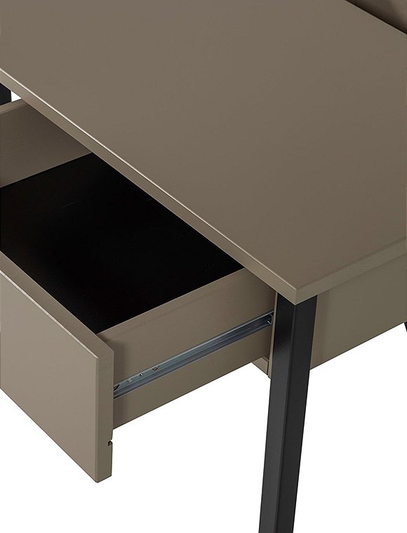 Stilvoll, praktisch und modern - der New Julius Schreibtisch von woood verbindet Funktionalität mit Design und zeichnet sich durch sein schlankes Bein-Gestell und deren tiefschwarze Oberfläche aus. Julius bietet eine geräumige Arbeitsfläche sowie eine praktische Schublade. Der Schreibtisch eignet sich ideal als Arbeits- oder Studiertisch. Dank der Schublade kannst du deine Sachen einfach verstauen und den Arbeitsplatz ordentlich und übersichtlich halten. Der schöne Tisch ist nicht nur praktisch, sondern auch äußerst stilvoll und mit den Maßen 75 x 53 x 126 cm ist er ein echter Blickfang für dein Home Office! New Julius ist aus geschliffenem, lackiertem Kiefernholz gefertigt und hat einen dekorativen Sockel aus Metall. Die Farbe „Mud” oder "Dust" sorgen für eine luxuriöse Wärme in deinem Interieur. Hab viel Spaß an dem New Julius Schreibtisch von woood - er ist ein wirklich kompatibles Möbelstück.