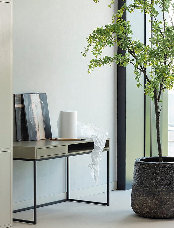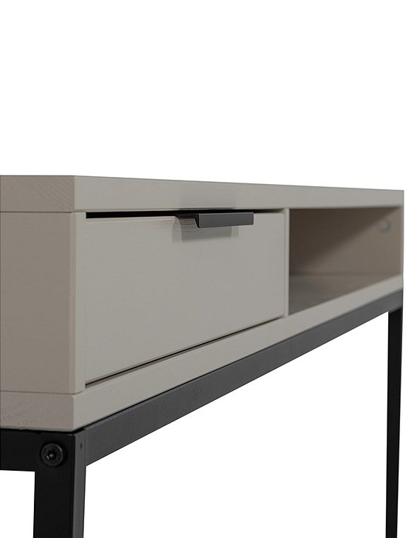 Stilvoll, praktisch und modern - der Nore Schreibtisch von woood verbindet Funktionalität mit Design. Der Arbeitstisch stammt aus den Niederlanden, und wird dort in der Fabrik des niederländischen Labels hergestellt. So fein verarbeitet, wird er garantiert dein neuer Lieblingstisch für ein entspanntes Home Office sein - ganz egal ob du ihn im Gäste-, Arbeits- oder Wohnzimmer aufstellst. Arbeite bequem und stilvoll - denn der Tisch lässt sich wundervoll kombinieren. Der Schreibtisch ist 75 x 58 x 130 cm groß, aus geschliffenem, lackiertem Kiefernholz gefertigt und hat einen schwarzen Sockel aus Metall. Die Farbe „Mud” oder "Dust" sorgen für eine luxuriöse Wärme in deinem Interieur. Hab viel Spaß an dem Nore Schreibtisch von woood - er ist ein wirklich kompatibles Möbelstück.