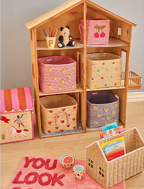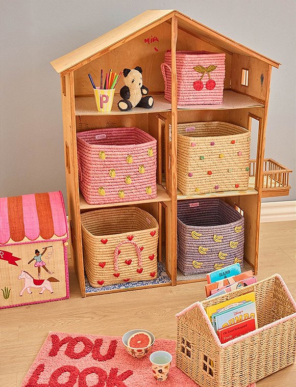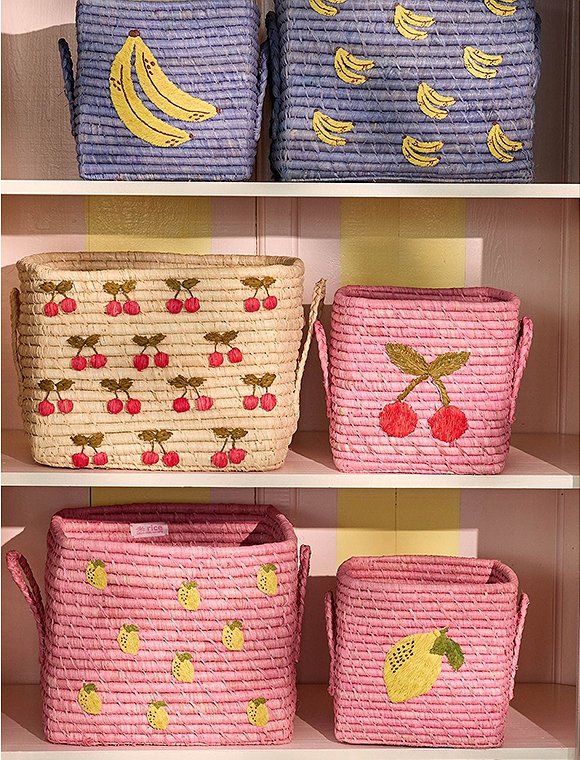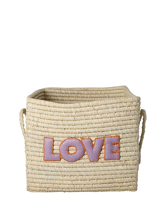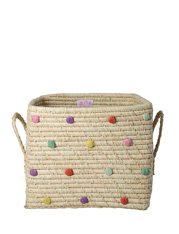 Quadratisch - Raffia Aufbewahrungskorb von rice in schönen uni Farben oder mit besticktem Motiv. Der quadratische Aufbewahrungskorb mit den Maßen 25 x 30 x 30 cm wird, wie alle Raffiaprodukte des dänischen Labels rice, aus Raffiafasern von Hand in Madagaskar hergestellt. Dank der seitlichen Henkel können die Körbe leicht aus dem Regal gezogen und von A nach B getragen werden. Kleines Spielzeug wie Lego, Schleich Tiere, Puppenklamotten, Stifte oder Deko Accessoires wie Kerzen, Servietten und vieles andere mehr sind im Handumdrehen wegsortiert und verschwinden aus dem Blickfeld. Wähle deinen Favoriten aus 7 tollen Designs: den uni Farben Rosa, Tee oder Mint oder wähle das rosa Modell mit der Zitrone, den blauen Korb mit den Bananen, den natur Korb mit LOVE Schriftzug in lila oder den naturfarbenen Korb mit dem süßen Punkte Design in den 'Glory Days Farben'. Schaffe hübsche Ordnung in deinem Zuhause. Der praktische Bastkorb ist auch eine Nummer kleiner in 20x20x20 cm bei uns erhältlich. Wir wünschen dir viel Freude mit dem All-Time Favorit - Aufbewahrungskorb von rice!Details: