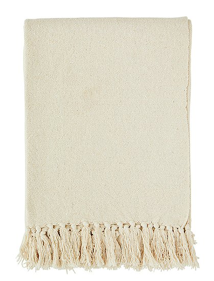 Die super schöne recycelte Baumwolldecke von Madam Stoltz ist zu 100 % aus ausrangierter Kleidung hergestellt. Da sie vollständig von Hand gefertigt wird, kann ihre Größe und Farbe von Wurf zu Wurf leicht variieren. Wir finden die kleinen Unvollkommenheiten der Tagesdecke in offwhite absolut schön. Daher eignet sie sich toll für dein Bett oder Sessel - denn schöner kann man sich gar nicht einkuscheln. Die praktische Decke ist drinnen wie draußen prima zu gebrauchen - sie hat die nötige Dicke - um es überall ein wenig gemütlicher zu machen - und sieht dabei natürlich fantastisch aus. Das Tuch ist 125 x 175 cm groß und wird komplett aus 100% recycelter Baumwolle gewebt. Der hübsche Überwurf hat eine dekorative Fransenkante und lässt sich bei 40° unkompliziert in der Maschine waschen. Hab viel Spaß mit der recycelte Baumwolldecke von Madam Stoltzv- und mach es dir drinnen wie draußen gemütlich!