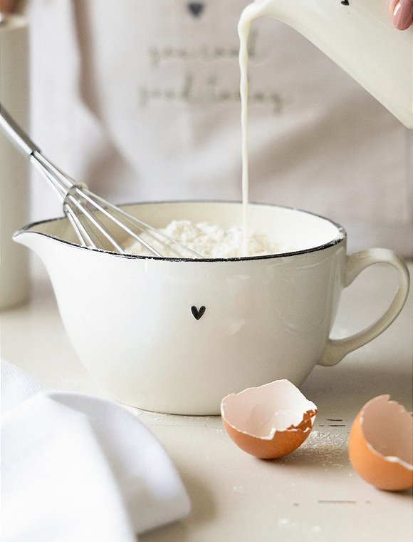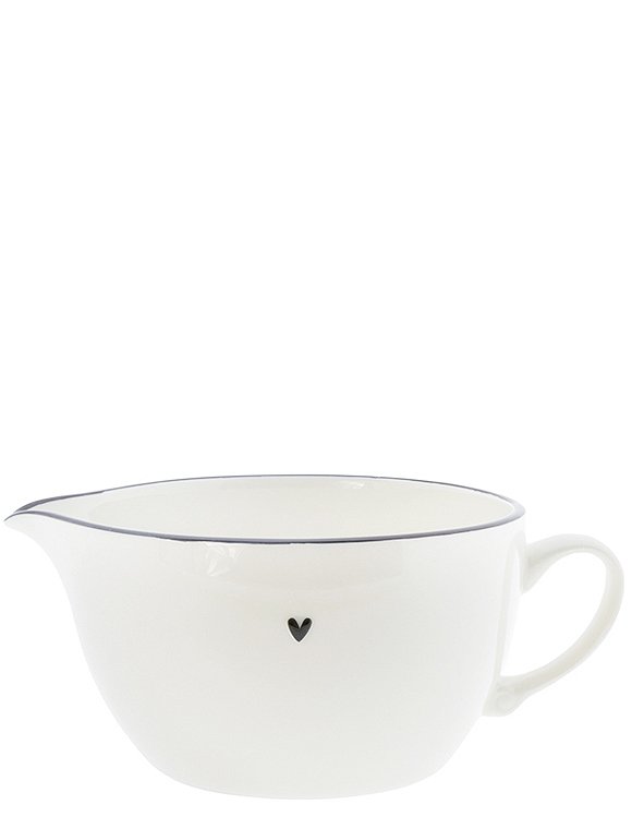 Kleine, weiße Rührschüssel von Bastion Collections mit dem typischen kleinen, grafischen Herz und einem schmalen, schwarzen Rand - die süße Schale ist die perfekte Ergänzung zum Lieblingsgeschirr und natürlich auch prima für den gedeckten Tisch geeignet. Die Schüssel aus Keramik ist 9 x Ø15 cm groß, handbemalt, Spülmaschinen und Mikrowellen fest - das Geschirr ist prima für den täglichen Bedarf geeignet und lässt sich wunderbar mit ganz unterschiedlichen Wohnaccessoires kombinieren. Wer es auf den Punkt genau liebt - findet hier jede Menge Tassen, Teller, Bowls und Tischwäsche. Die weiße Rührschüssel von Bastion Collections möchte man auf keinen Fall wieder hergeben...wir wünschen dir viel Spaß beim Essen!Details: