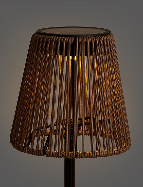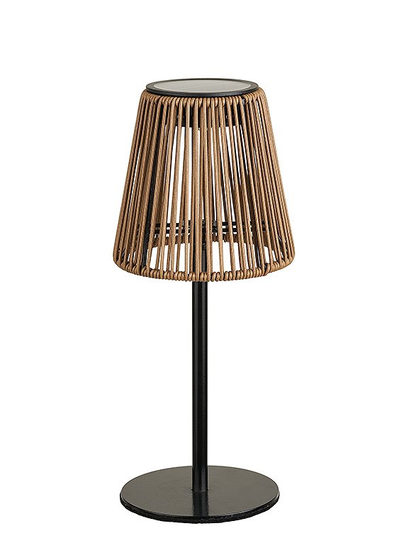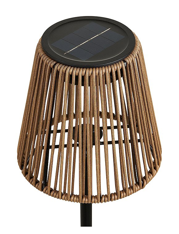 Maße (HxØ): 30,5 x 13,5 cm Material: Metall, PolyrattanTechnische Details: Fassung: Solar LED Leistung: 600 MAH wiederaufladbarer AkkuSpannung: Max. DC 1,2V Schalter: Berührungsschalter zum Ein-/Ausschalten. Schutzart: IP 44 Leuchtmittel enthalten: ja