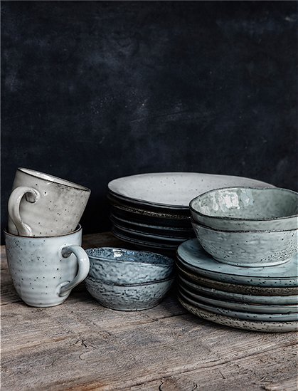 Sieht einfach toll aus! Da isst das Auge mit - Schale Rustic von house doctor in drei unterschiedlichen Größen. Begrüßen Sie Ihre Gäste mit einem schön gedeckten Tisch. Die Keramikschalen sind handgefertigt und haben eine sehr, sehr individuelle und rustikale Glasur in hellem graublau und dunkelgrauen Tönen. Der rustikale Look schafft eine gemütliche Atmosphäre und bietet viel individuelle Persönlichkeit für deine Tischdeko. Da die Schälchen handgefertigt sind, gleicht keine Bowl der anderen, ist die gesprenkelte Glasur immer wieder anders - das ist gewollt und durchaus Konzept des Designs. Das Produkt ist sowohl spülmaschinenfest als auch mikrowellengeeignet – das heißt, absolut alltagstauglich. Wer also gerne kocht und Essen zubereitet, hat in der Geschirr Serie Rustic einen tollen Partner - denn es gibt eine sehr, sehr große Auswahl an unterschiedlichem Geschirr. Vollende den Look mit Ausdruck für Zeitgeist und Geschmack mit der Schale Rustic von house doctor - sie sind ein Gewinn für jede Küche!