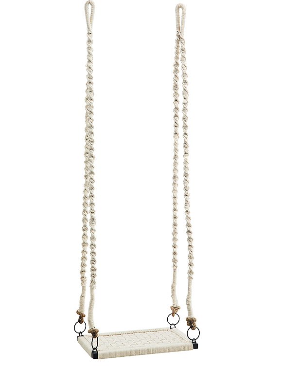 Glücksgefühl! Schaukel von MADAM STOLTZ und du fühlst dich wieder jung:). Die hübsche Schaukel gibt es in drei tollen Farben, sie ist mit einer Sitzfläche und farblich abgestimmten Seilen in off white, silber und gold erhältlich und in einer Patchwork Variante. Die Schaukel ist aus einem Baumwoll-/Nylonseil und Juteseil von Hand gearbeitet und macht sich garantiert besonders hübsch in deiner Wohnung. Da die Befestigung sehr individuell ist, kommt die Schaukel ohne Befestigungsmaterial zu dir nach Hause - aber keine Angst - du bekommst alle fehlenden Teile garantiert in deinem Baumarkt. Wenn du die Schaukel im Freien nutzen möchtest, schütze sie bitte unbedingt vor Witterungseinflüssen. Da das Produkt von Hand gearbeitet ist, kann es leicht in Form und Farbe variieren. Die süße Schaukel kann mit Höchstens 100 kg belastet werden. Genieße den kleinen Kurzurlaub mit der süßen Schaukel von MADAM STOLTZ und genieße jeden Schwung!Details: