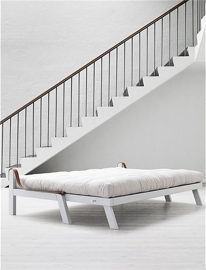 Das Schlafsofa Nippon mit Futonmatratze und Massivholzgestell aus nordischer Kiefer mit FSC-Zertifikat kann im Handumdrehen zu einem komfortablen Gästebett umfunktioniert werden - einfach die Riemen der Armlehnen lösen, abklappen, fertig. Wir bieten Ihnen das Sofa in zwei verschiedenen Farben an.
