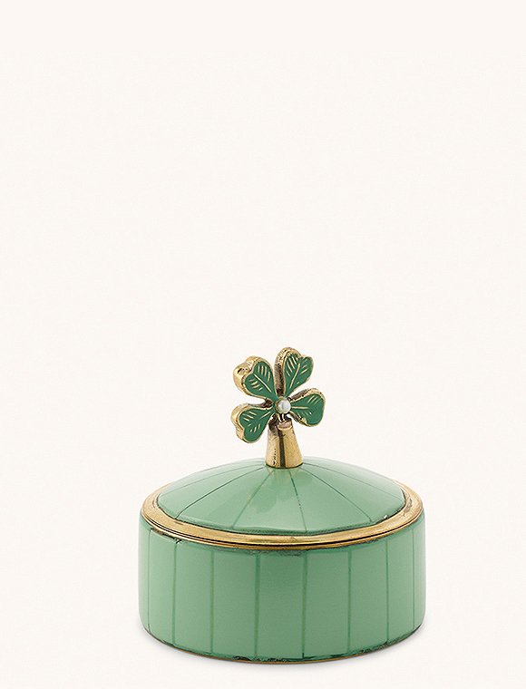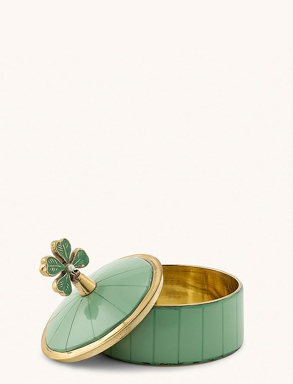 Versuche dein Glück mit der süßen Schmuckdose Kleeblatt von Doing Goods. Denn dieser handgefertigte Schatz wurde sorgfältig von unseren talentierten Kunsthandwerkern in Indien gefertigt! Diese verspielte Box besteht aus Messing und Muschel und eignet sich perfekt zur Aufbewahrung deiner kleinen Schätze und Schmuckstücke. Da jede Dose von Hand gefertigt wird, ist jedes Stück ein Unikat! Akzeptiere die kleinen Unvollkommenheiten, die zum handgefertigten Charakter dieses Produkts passen - denn keine zwei Dosen sind haargenau gleich! Hab viel Spaß mit der süßen Schmuckdose Kleeblatt von Doing Goods - sie ist wirklich sehr, sehr charmant.Details: