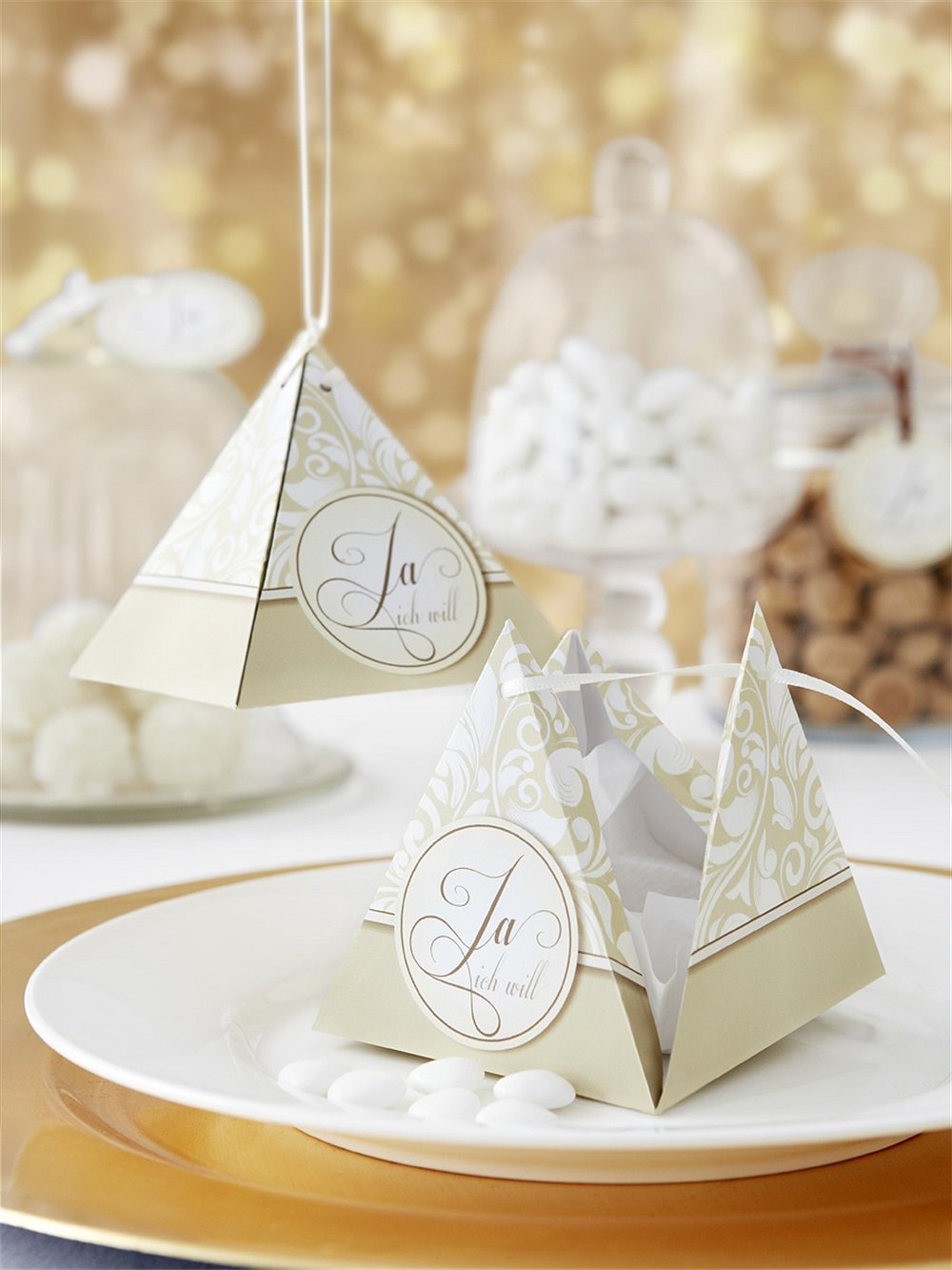 Ja ich will! Tolle Schmückkiste für die Hochzeit, bestehend aus 48 Artikeln mit denen man Büffet und Tafel wunderbar dekorieren kann. Das hochwertige Papeterie Set besteht aus: 8 Tischkärtchen bzw Buffetschilder, 8 Pyramiden zum Befüllen oder Aufhängen, 8 Servietten- bzw Flaschenringe, 8 Geschenkanhänger, 8 Geschenktütchen, 8 Geschenktütchenschilder, 8 Cupcake- oder Kuchentopper, Zum sofortigen Gebrauch, alle benötigten Materialien wie Tütchen, Satinband und Holzspießchen sind selbstverständlich im Paket enthalten.