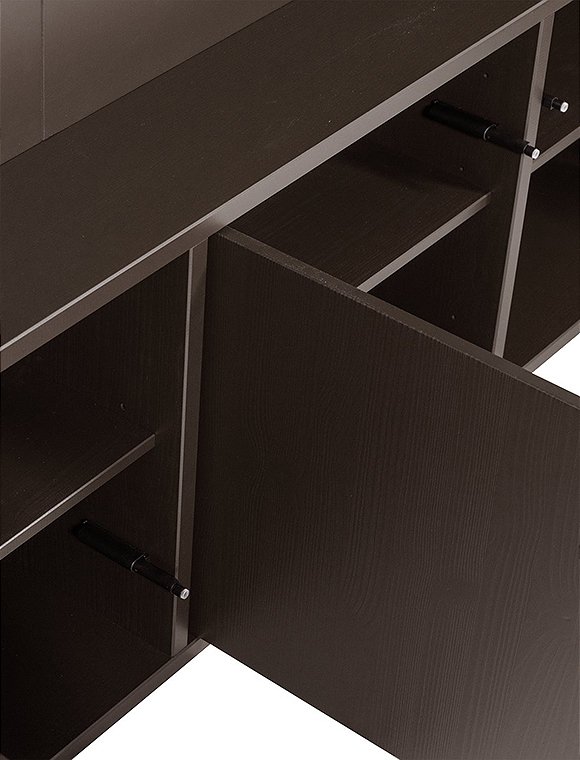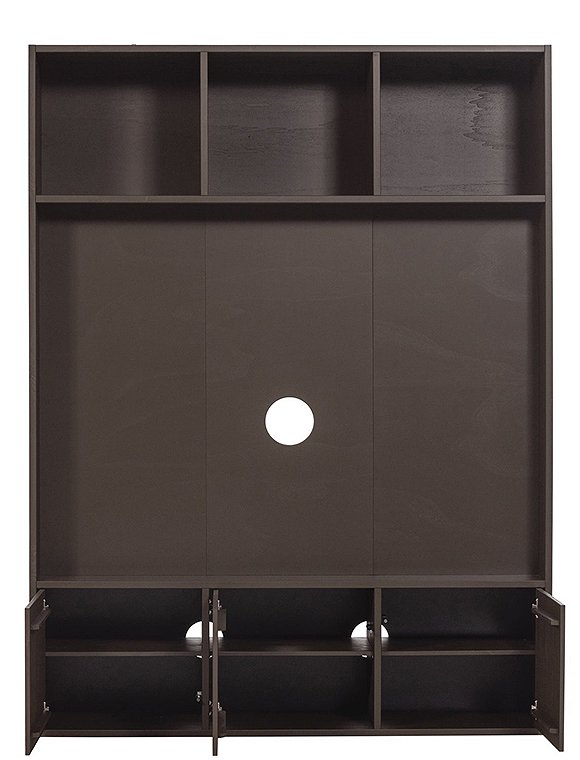 TV-Ablageschrank mit 3 offenen Fächern oben (215x40x160 cm) - unten versteckst du Kabel, Geräte oder DVDs hinter Türen mit Push-to-Open-System. Oben bietet dir der Schrank Platz für Deko, und in der Mitte kommt dein Fernseher perfekt zur Geltung – zum Aufstellen oder Aufhängen.