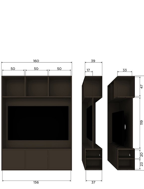 TV-Ablageschrank, 3 offene Fächer oben: 215  40 x 160 cm