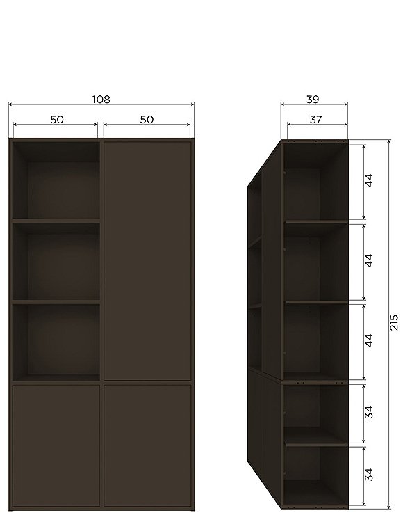 Ablageschrank mit 3 offenen Fächern links (215x40x108 cm) - das passende Gegenstück – ideal zum Kombinieren und Spiegeln. Auch hier bringst du Dekoration schön zur Geltung.