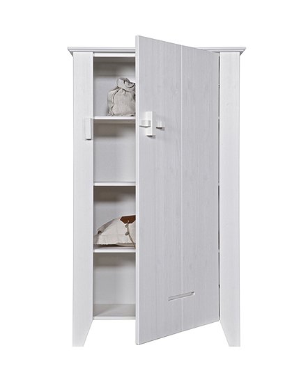 Wie aus alten Zeiten: Schrank in niedrig, mit 1 Tür von de EEKHOORN. Schlichtes Design überzeugt und so ist dieses Möbel wie gemacht für Land- und Stadtmenschen. Den schönen Küchen- oder Wäscheschrank, mit einer Höhe von 142 cm, gibt es in weiß, schwarz und einem zarten Grauton (Mist). Dank der Aufteilung mit drei Einlegeböden passen enorm viele Handtücher, T-Shirts oder Küchenutensilien in die vier Fächer hinein. Der robuste Schrank im Landhausstil namens Gijs passt perfekt in jedes Kinderzimmer, Schlafzimmer, den Wohnraum oder auch die Landhausküche. Gijs ist Teil der woood-Kollektion und fällt durch seine grob gesägte Kiefer und die matte Beschichtung auf. Die Schranktür wird mit einem dekorativen, großen Holzriegel verschlossen. Der Schrank aus lackiertem FSC-zertifiziertem Kiefernholz wird zerlegt geliefert (Aufbau Anleitung liegt selbstverständlich bei) und hat eine sägeraue Oberfläche.