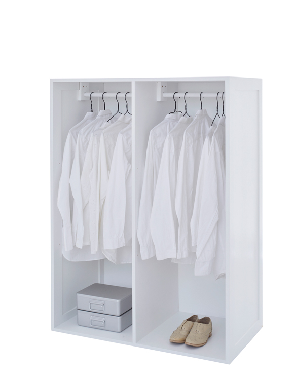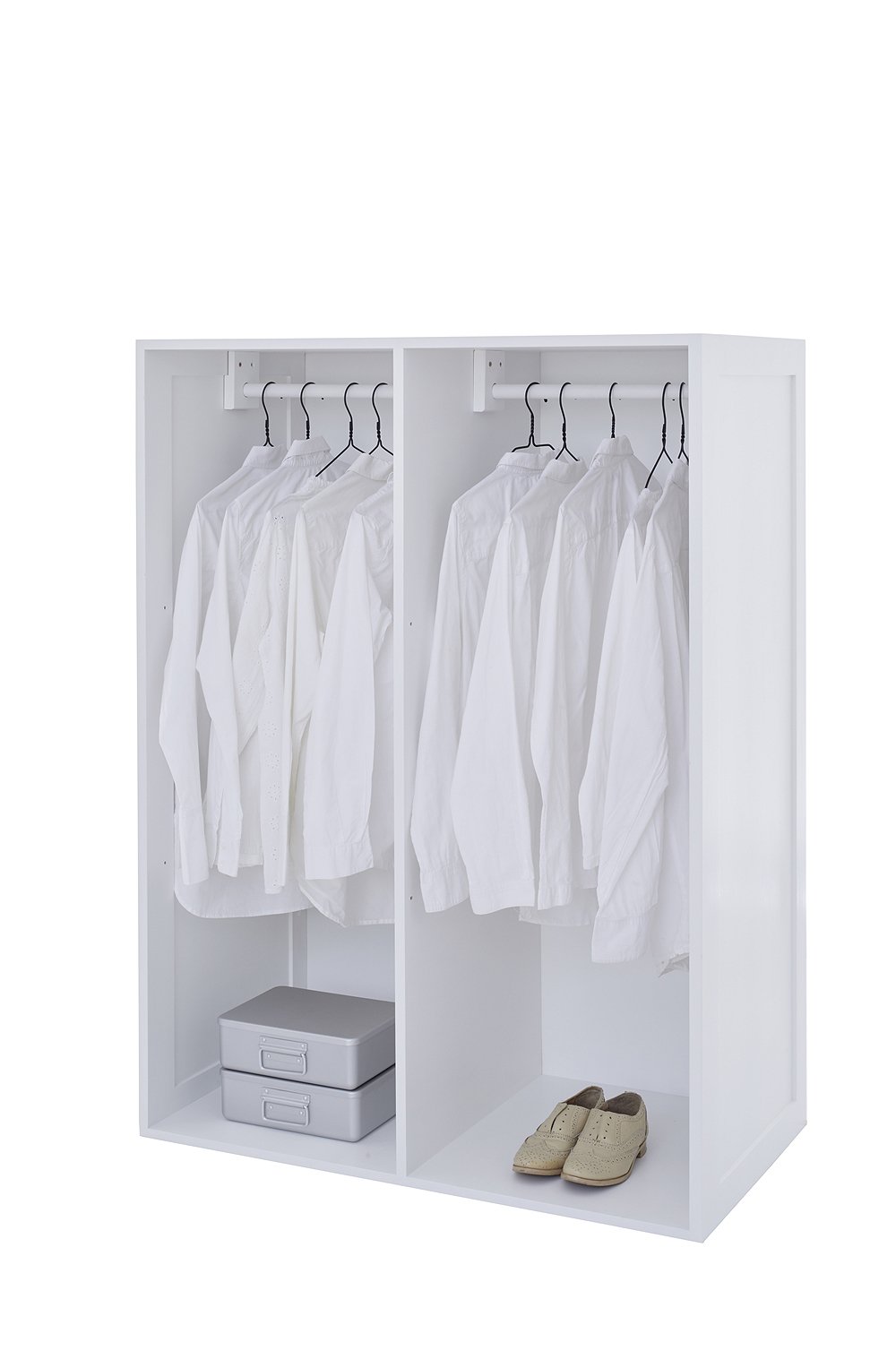 Das offene Schrankmodul gehört zu unserem neuen Modulprogramm. Es wird in zwei Höhen angeboten: 129 oder 172 cm. Das Innenleben deines Schrankes bestimmst du ganz individuell, wähle zwischen Kleiderstange oder Einlegeböden aus unserem Zubehör, dass du weiter unter auf dieser Seite findest.