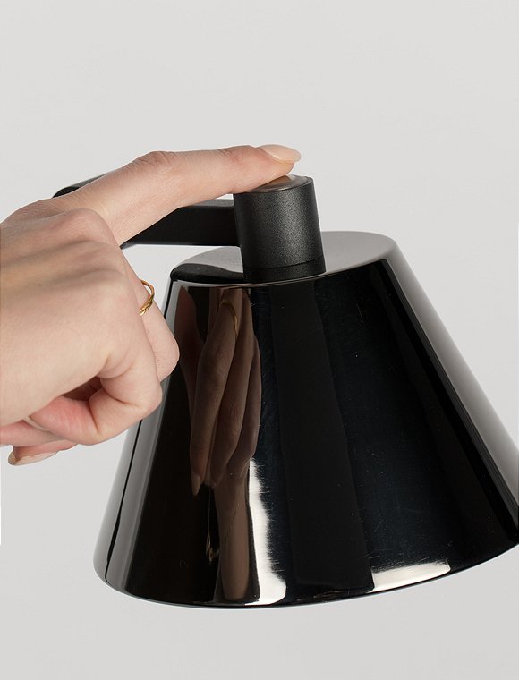 Maße (HxTxB): 142,5 x 45,5 x 25 cm Lampenschirm (HxØ): 9 x 14,5 cmLampensockel und -arm sind höhenverstellbarMaterial:Fuß/Sockel: matt lackiertes MetallLampenschirm: schwarz verchromtes Metall, glänzend Touch-on/off Schalter oberhalb des Lampenschirms, 3 Leuchtstufenschwarzes Textilkabel: 200 cm Eingebaute LED-Birne (5 W) Geeignet für Leuchtmittel der Energieklassen: A++, A+ und A