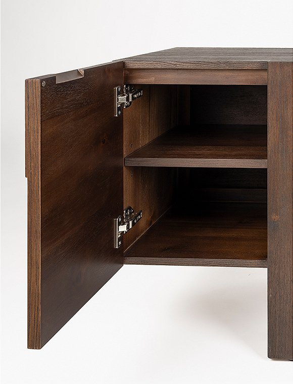 Maße (HxTxB): 60 x 45 x 188 cmMaterial: Basis: GummibaumholzTop: Akazienholz, walnussfarbene Oberfläche mit Maserung Hinweis:Maximale Belastbarkeit: 170 kg