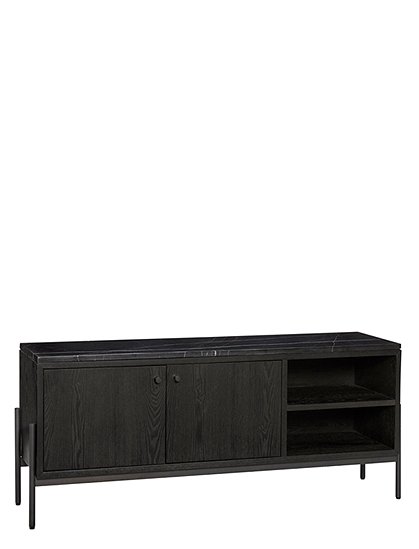 Maße (HxTxB): 51x35x120 cm Material: Top: Marmor Korpus: Esche schwarz lasiertFüße: Metall