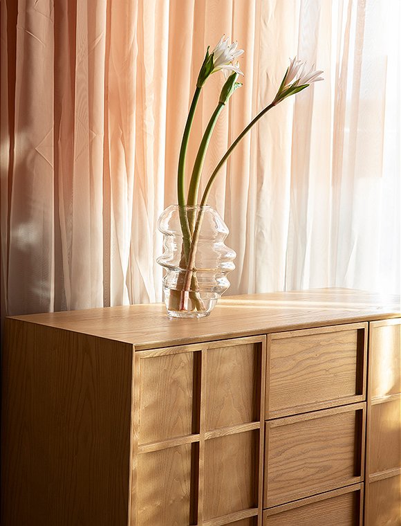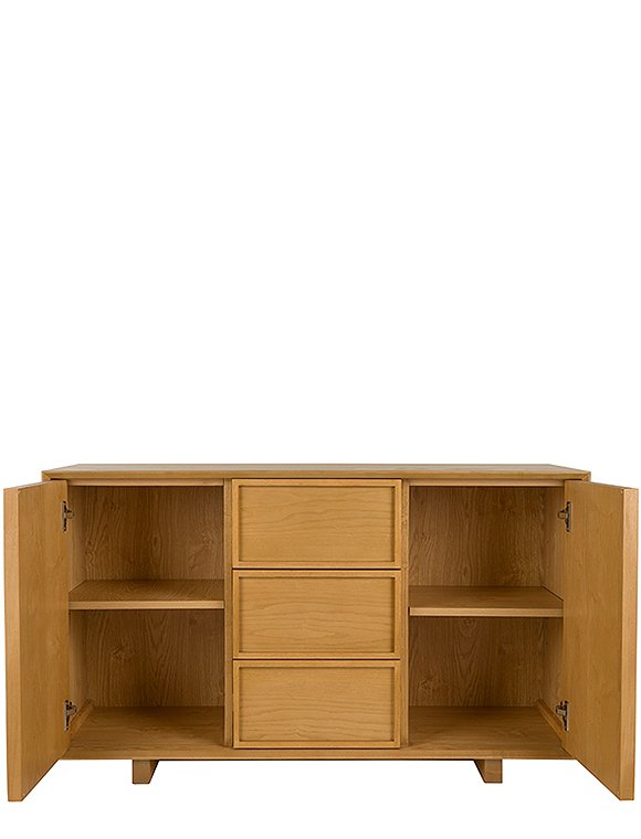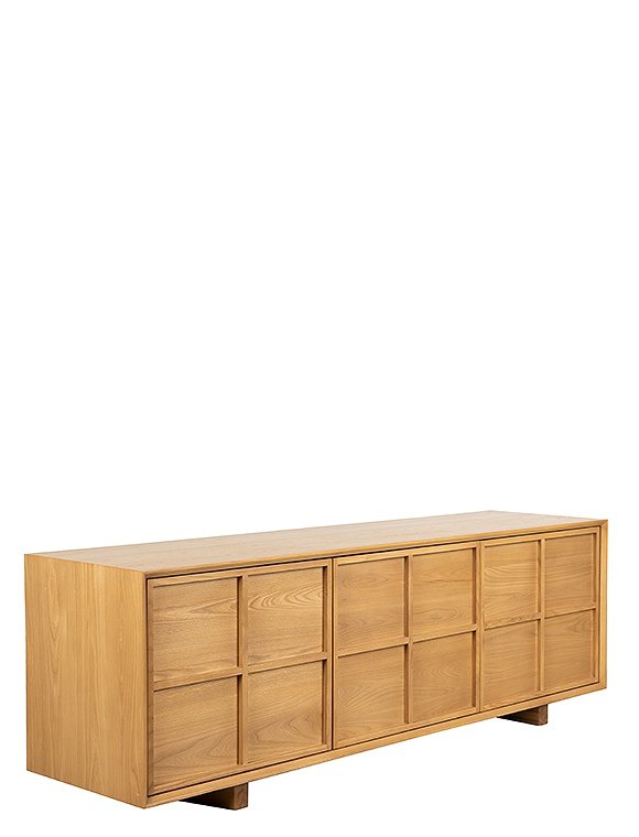Mit dem Sideboard Raster in natur von Zuiver holst du dir ein echtes Statement im Japandi-Stil nach Hause – klar, reduziert und voller Ruhe. Zwischen Zen und Hygge vereint dieses Möbelstück japanische Handwerksästhetik mit skandinavischer Gemütlichkeit und schafft eine Atmosphäre, die Gelassenheit ausstrahlt. Charakteristisch für die Raster-Serie sind die feinen Holzlamellen auf Türen und Schubladen. Sie bilden ein rautenförmiges Muster, das je nach Lichteinfall ein wunderschönes Spiel aus Licht und Schatten erzeugt. Die schlanken, geraden Beine heben den Schrank leicht vom Boden ab und verleihen ihm eine elegante Leichtigkeit – minimalistisch, aber mit viel Liebe zum Detail. Du kannst zwischen zwei Größen wählen: Das flachere Modell misst 54x42x160 cm mit 3 Türen und 6 Fächern dahinter. Dank praktischer Aussparungen eignet sich diese Variante ideal als TV-Möbel – Kabel verschwinden ordentlich und unsichtbar. Das höhere Sideboard hat die Maße 70x45x120 cm mit zwei Türen rechts und links, dahinter jeweils 2 Fächer. In der Mitte befinden sich drei grifflose Schubladen, die zusätzlichen Stauraum bieten und das klare Design unterstreichen. Gefertigt aus massiver Esche mit natürlicher Oberfläche überzeugt Raster durch Qualität, Langlebigkeit und eine warme, authentische Ausstrahlung. Ob als Sideboard, Lowboard oder Aufbewahrungsschrank – mit Raster bringst du Struktur, Stil und eine ruhige Japandi-Atmosphäre in dein Zuhause. Ein Must-have für alle, die Ordnung lieben und auf zeitloses Design setzen. Das Sideboard Raster in natur von Zuiver wird per Spedition geliefert. Details: