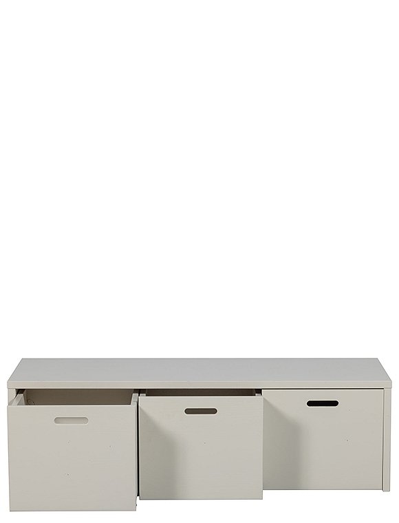 Die kann man immer gut gebrauchen! Denn Silke Truhenbank von woood ist praktisch und robust. Die Bank ist aus massivem, FSC-zertifiziertem, lackiertem Kiefernholz gefertigt und in zwei Farben erhältlich. Unter der Bank befinden sich 3 große Schubfächer. Das macht diese Truhenbank sehr praktisch: Sitzen, Spielen und Aufbewahren in einem Möbelstück. Du möchtest mehr Gemütlichkeit? Einfach ein paar Kissen drauf - fertig. Die Bank ist 36 x 50 x 120 cm groß und wird zerlegt geliefert. Hab viel Spaß an der schlichten wie schönen Silke Truhenbank von woood.Details: