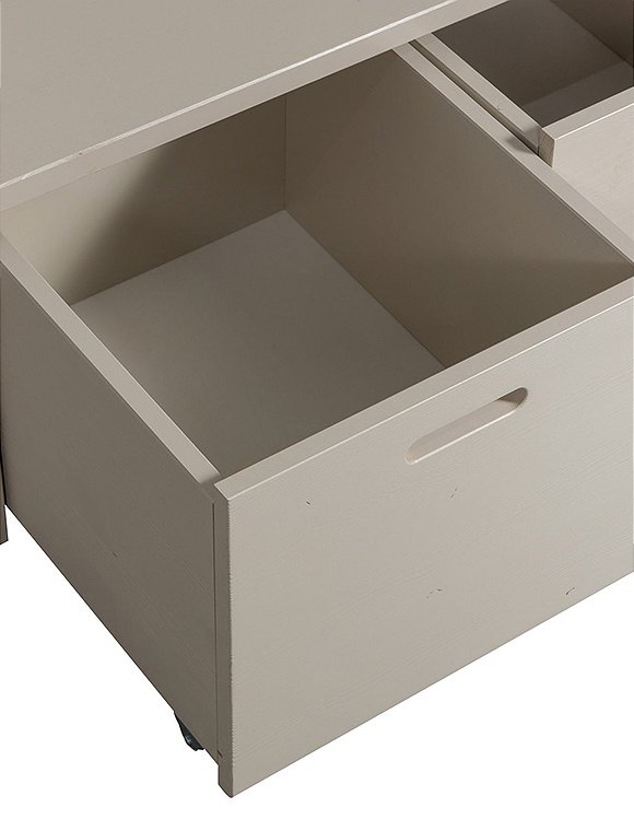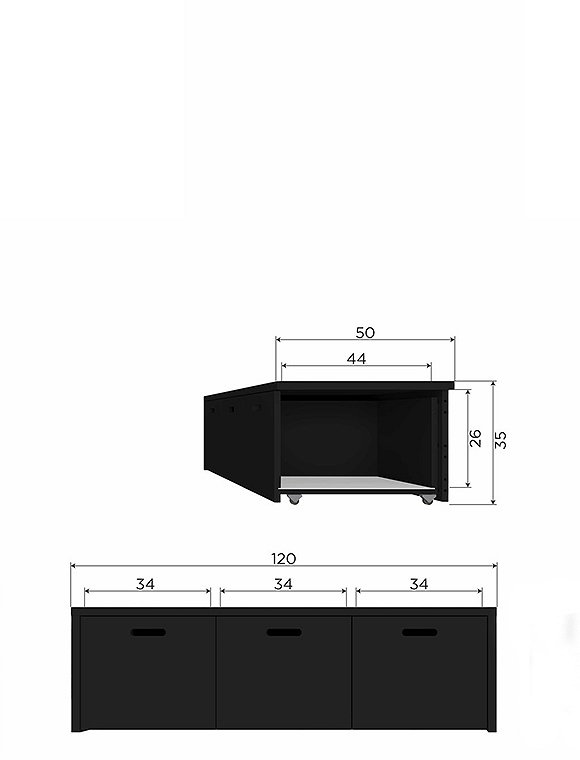 Maße (HxTxB): 36 x 50 x 120 cmSchublade: 26 x 44 x 34 cm Tragfähigkeit: 150 kg Gewicht: 30 kgMaterial: Lackiertes Kiefernholz FSC zertifiziertPflege:Das Kiefernholz ist mit einem umweltfreundlichen Lack auf Wasserbasis behandelt, der die Lebensdauer des Produkts erheblich verlängert. Behandeltes Kiefernholz lässt sich mit einem leicht feuchten Tuch leicht sauber halten. Um Kreise und Flecken im Holz zu vermeiden, empfiehlt es sich, feuchte Stellen sofort zu trocknen. Lieferung: Der Artikel wird in einem Paket mit einer klaren Aufbauanleitung geliefert. Um