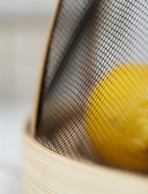 Nach Gebrauch mit einem weichen, feuchten Tuch abwischen und den Bambusdeckel vorsichtig offen lassen, damit die Feuchtigkeit vollständig verdunsten kann. An einem trockenen, schattigen Ort aufbewahren und nicht dicht stapeln, um ein Verziehen des Bambusrahmens und der Baumwollkanten zu verhindern.