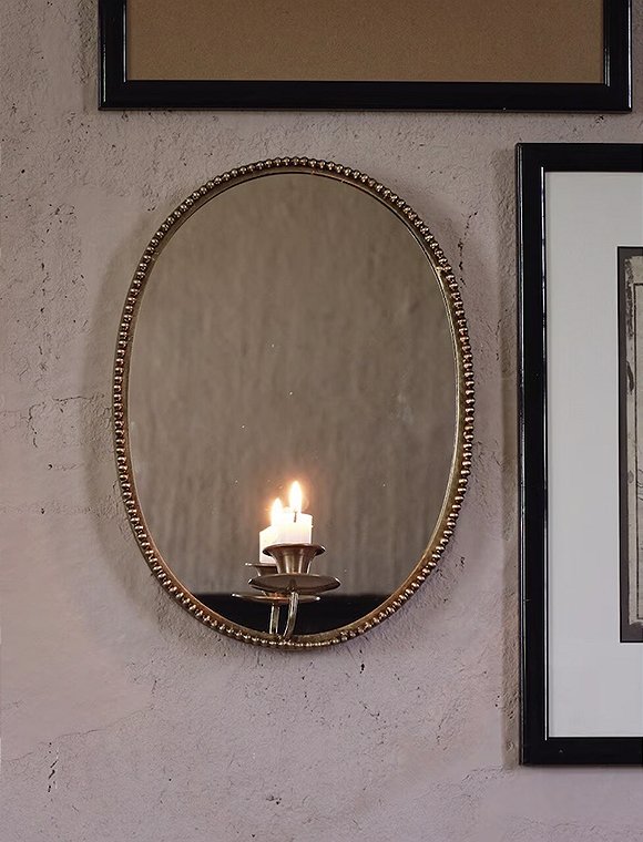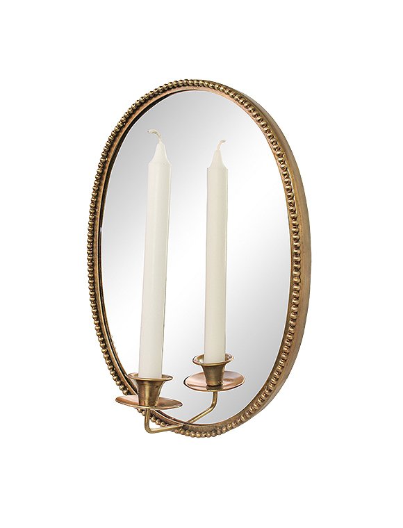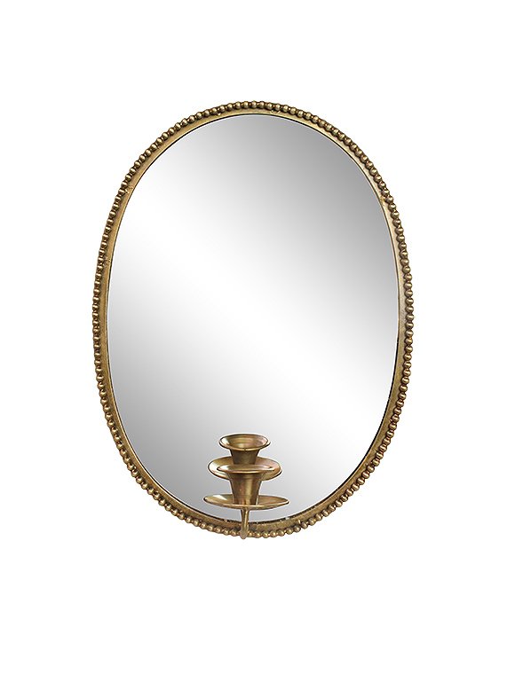 Der schöne Spiegel Louise mit Kerzenhalter von Strömshaga beeindruckt mit seiner Antikmessing-Optik mit dekorativem Rand, akzentuiert durch kleine runde Punkte. Ausgestattet mit einem Messing-Kerzenhalter für handelsübliche Stabkerzen (ca. Ø2,1 cm) ist der Wandspiegel besonders geeignet für den Wohnraum oder den Eingangsbereich. Denn der Spiegel reflektiert die Kerzenflamme und erzeugt somit einen eleganten Lichteffekt. Das Modell Louise hat die Maße 35x10x25,5 cm und ist ein vielseitiges und dekoratives Stück für verschiedenste Einrichtungen. Dieses Produkt wird von erfahrenen Kunsthandwerkern in Indien gemäß den 10 Prinzipien des Fairen Handels der WFTO gefertigt. Das Unternehmen hilft, wirtschaftlich benachteiligte Gruppen aus der Armut zu befreien und schafft neue Chancen für ein besseres Leben für die Kunsthandwerker und ihre Familien. Neben fairen Löhnen und Arbeitsbedingungen betreibt das Unternehmen eigene soziale Projekte. Unter anderem betreibt es drei Schulen mit insgesamt 260 Schülern, führt Wasseraufbereitungs- und Sanitärprogramme durch und bietet Gesundheitschecks an. Setze mit dem Vintage Spiegel Louise mit Kerzenhalter von Strömshaga einen besonderen Akzent an deiner Wand. Details: