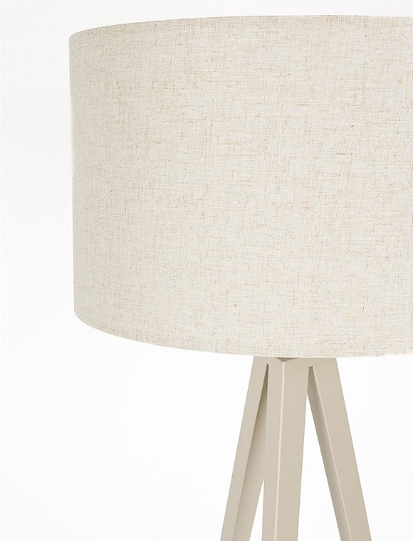 Maße (HxØ): 157 x 50 cmLampenbeine (Höhe): 133,50 cmLampenschirm: Ø50 cm Kabel: 180 cm Material: Beine: Holz, lackiert Lampenschirm: Metall, Stoff (Polyester)Kabel: KunststoffTechnische Details:Leistung: max. 13 Watt LEDFassung: E 27Schalter: Fußtrittschalter Steckertyp: Typ CDimmen möglich: nein Schutzart: IP 20Leuchtmittel enthalten: nein