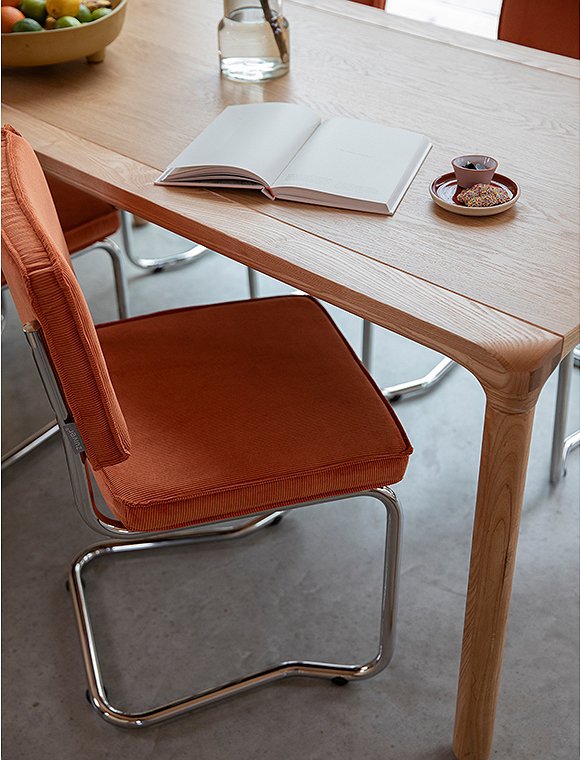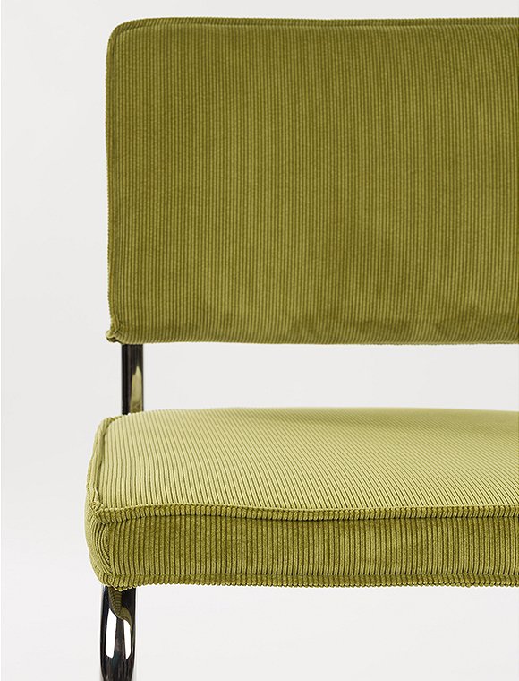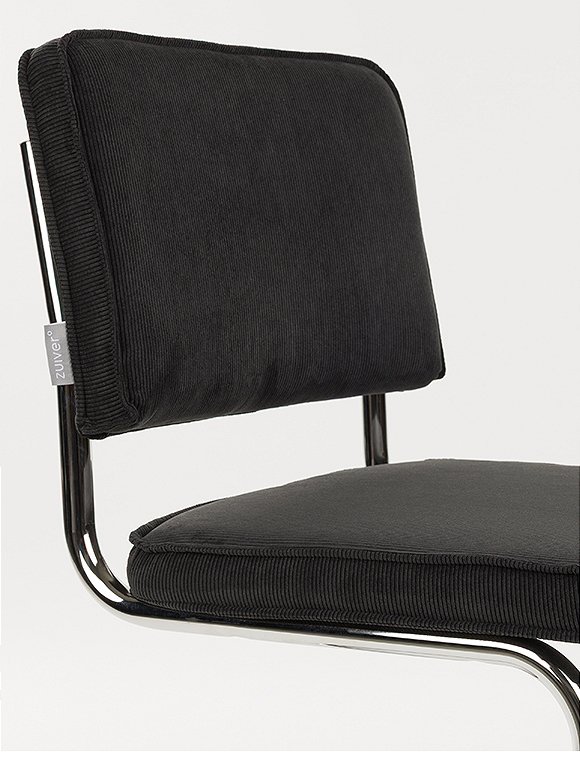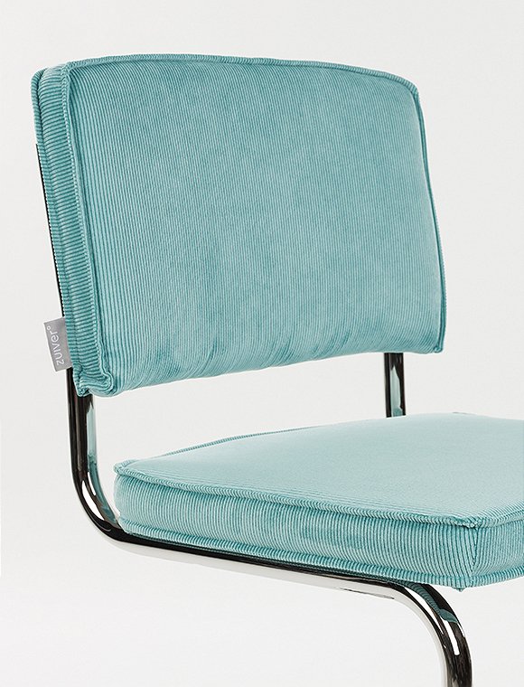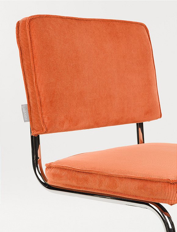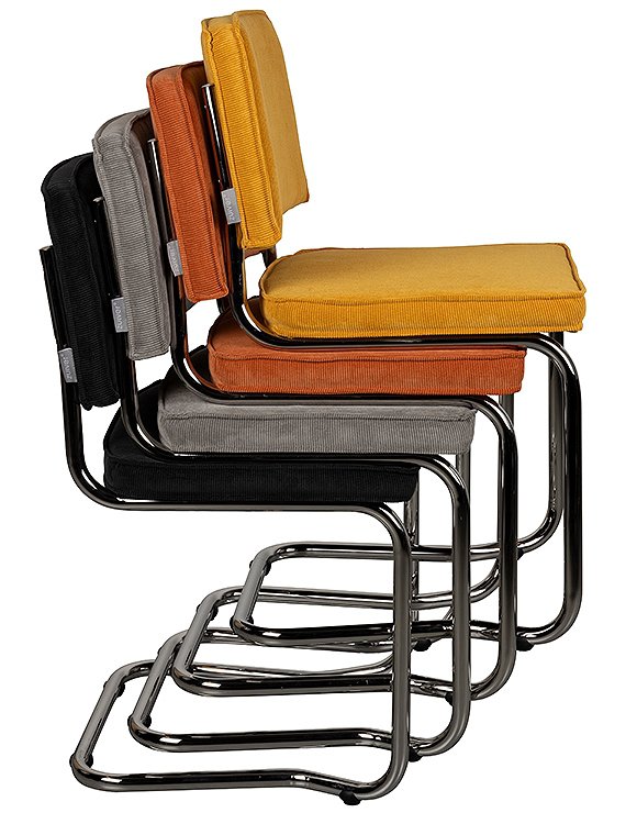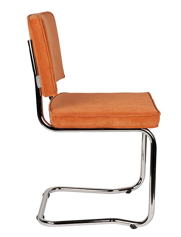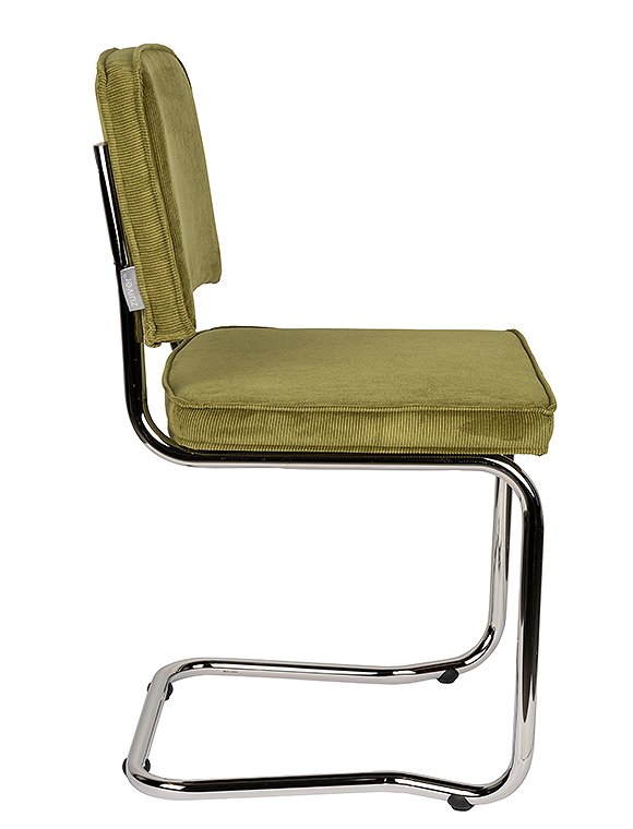 Moderner Freischwinger. Der Stuhl Ridge Kink Rib von Zuiver ist ein echter Klassiker. Mit seinen eleganten Kurven, der bequemen Sitzfläche und der gepolsterten Rückenlehne bietet dieser Stuhl nicht nur optimalen Sitzkomfort, sondern auch ein stilvolles Design. Diese Ausführung mit den Maßen 85x48x48 cm verfügt über ein gebogenes Rohrgestell in silberner Chromoptik, wodurch die Stühle platzsparend gestapelt werden können. Sitzfläche und Rückenlehne sind mit einem robusten gerippten Cordstoff bezogen, der für einen verspielten und modernen Effekt sorgt. Das markante Freischwingergestell (ohne Hinterbeine) aus Stahl verleiht dem Stuhl seine leichte und anmutige Anmutung. Der Ridge Kink Rib ist in einer spektakulären Farbpalette erhältlich (7 verschiedene Farben), die sich wunderbar kombinieren lässt. Der Stuhl Ridge Kink Rib von Zuiver wird zerlegt geliefert und ist mit wenigen Handgriffen montiert. Alternativ ist das Modell auch mit Armlehnen in allen 7 Farben erhältlich!