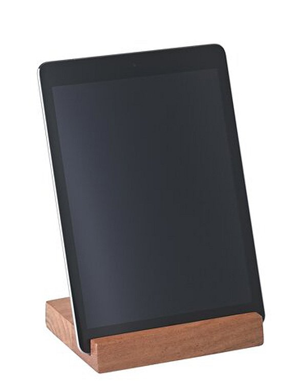 Auf dem praktischen Tablethalter Bento von GIFTCOMPANY kannst du dein Tablet aufstellen, wenn du ein Rezept nachkochen, einen Film schauen oder einen Videocall machen möchtest. Kurz gesagt, ist Bento der perfekte Begleiter, wann immer du dein elektronisches Medium aus der Hand haben möchtest und dich beim Zuschauen oder Lesen ganz entspannt zurücklehnen willst. Dank der schmalen Einkerbung steht das Tablet leicht angeschrägt und hat einen angenehmen Neigungswinkel. Hergestellt wird Bento im Format 2,5x11,4x15 cm aus hochwertigem dunklem Akazienholz. Wunderschön in der Küchenzeile oder auch auf dem Arbeitstisch. Hole dir mit dem natürlich schönen Tablethalter Bento von GIFTCOMPANY einen funktionalen Helfer in dein Zuhause. Details: