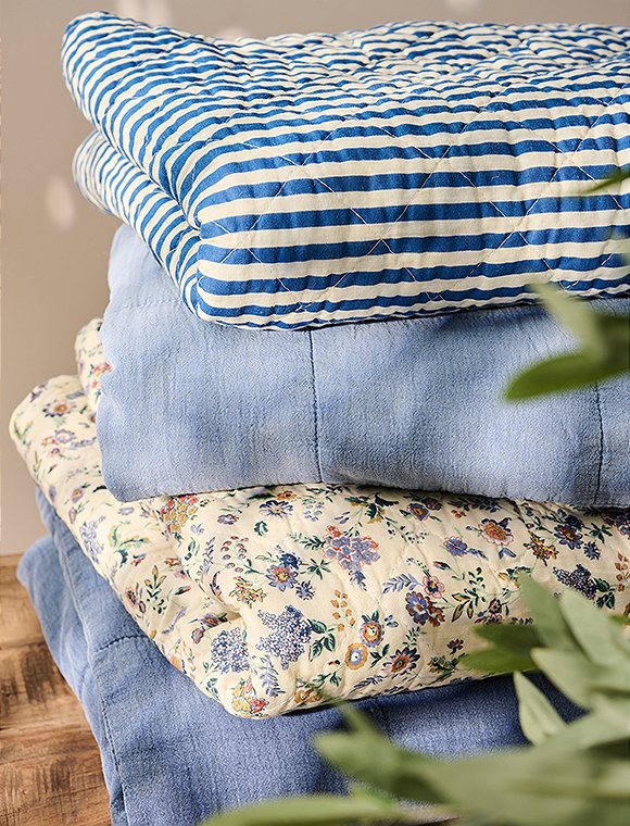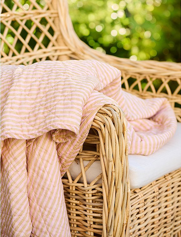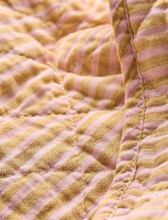 Darf in keinem Zuhause fehlen! Die Tagesdecke gestreift von Ib Laursen eignet sich ganz wunderbar als Tagesdecke im Schlafzimmer, zum Einkuscheln auf dem Sofa, als Picknickunterlage am Strand oder auch als Spieldecke im Kinderzimmer. Das wunderschöne Wohnaccessoire ist absolut vielseitig einsetzbar und lässt sich mit seinem dezenten Design herrlich zu verschiedensten Einrichtungen kombinieren. Dabei ist das dänische Label Ib Laursen seinem skandinavischen Stil mit dem feinen Streifendessin in hellblau/weiß oder offwhite/blau treu geblieben. Ganz neu gibt es jetzt den Quilt mit feinen hellrosa und senfgelben Streifen. Die Kombination mit dem eleganten Steppmuster macht den Quilt besonders hochwertig und zugleich modern. Mit seiner wärmenden Füllung aus 90% Baumwolle und 10% Kunstfaser ist die Tagesdecke gestreift von Ib Laursen ein unkompliziertes und schönes Wohnaccessoire zum Wohlfühlen. Die Steppdecke ist bei 40 Grad in der Maschine waschbar. Details: